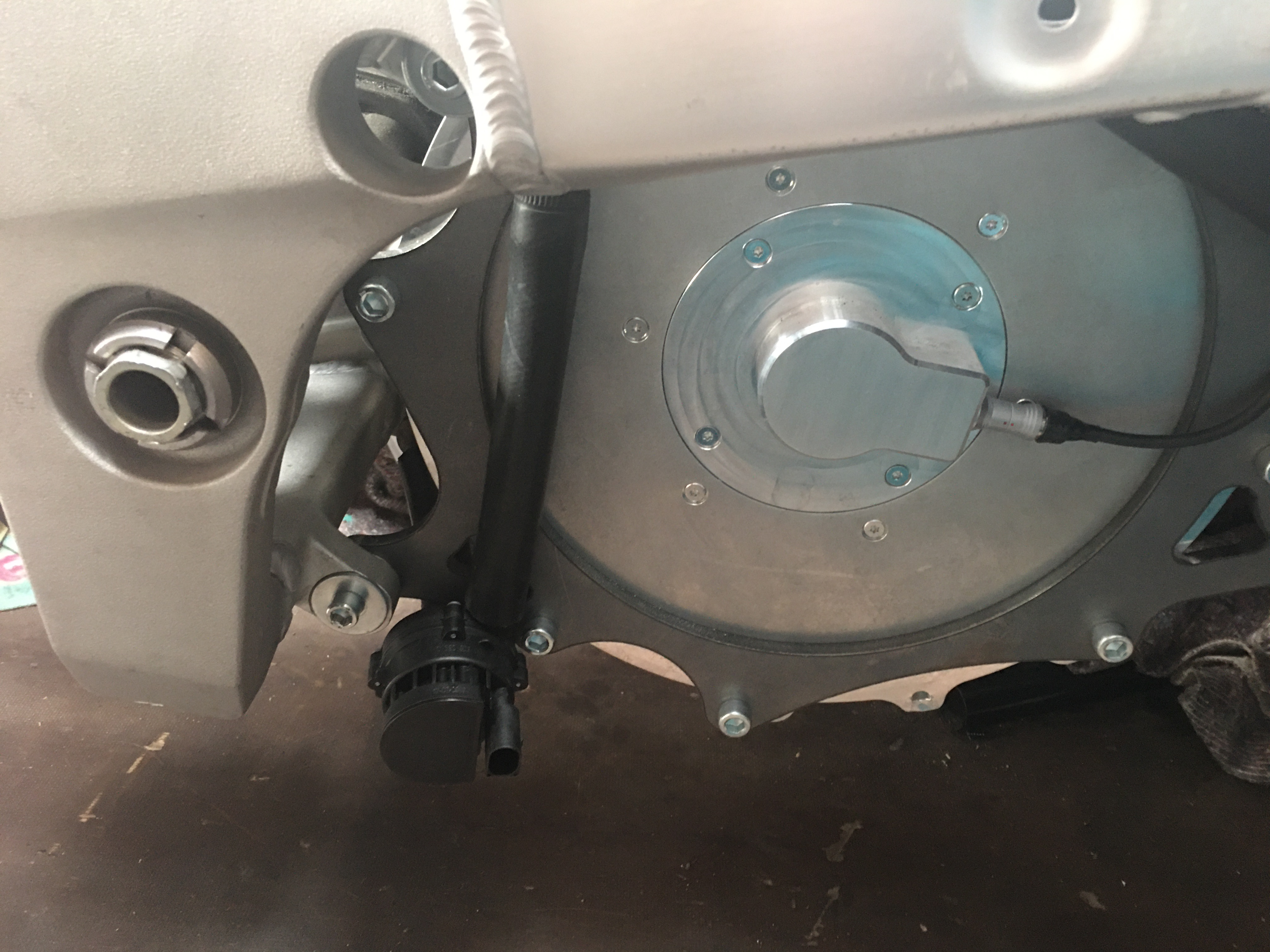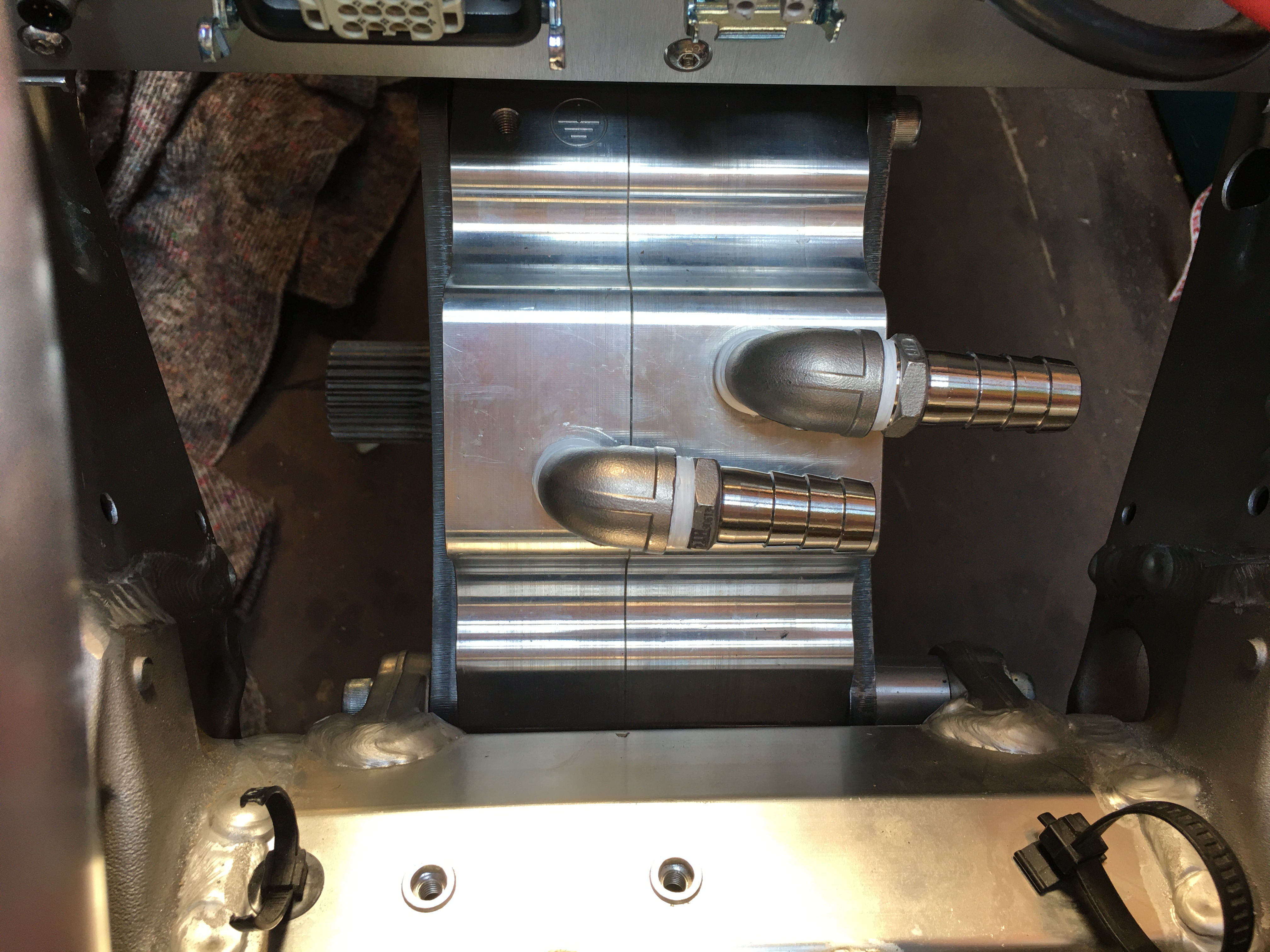 Pumpe für den Motor habe ich auch positioniert und dabei die Motorschlauchanschlüsse getauscht, damit es ordentlicher aussieht.
