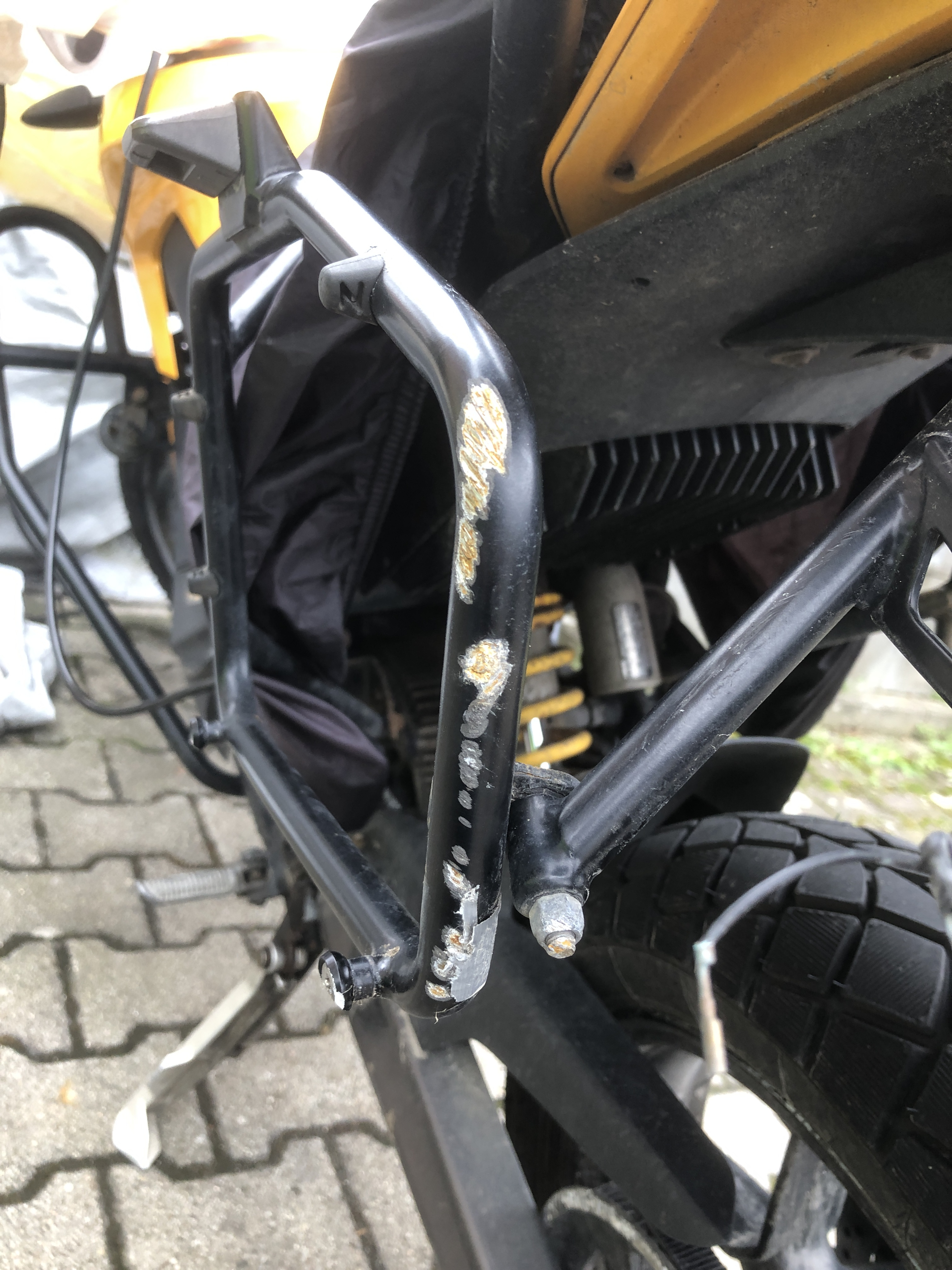 Dieses Bild vor Allem für alle, welche den Givi Dropbars für Zero nichts zutrauen - das mit wohl fast 50km/h auf die linke Seite geplumpst und funkenstiebend über den nassen Asphalt gerubbelt! Funktion zu 99% erfüllt