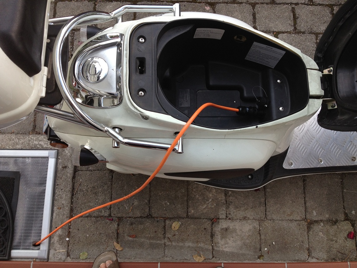 Ein bequemer Blick aus dem Kellerfenster, um zu sehen, wie weit der Roller geladen ist :mrgreen: