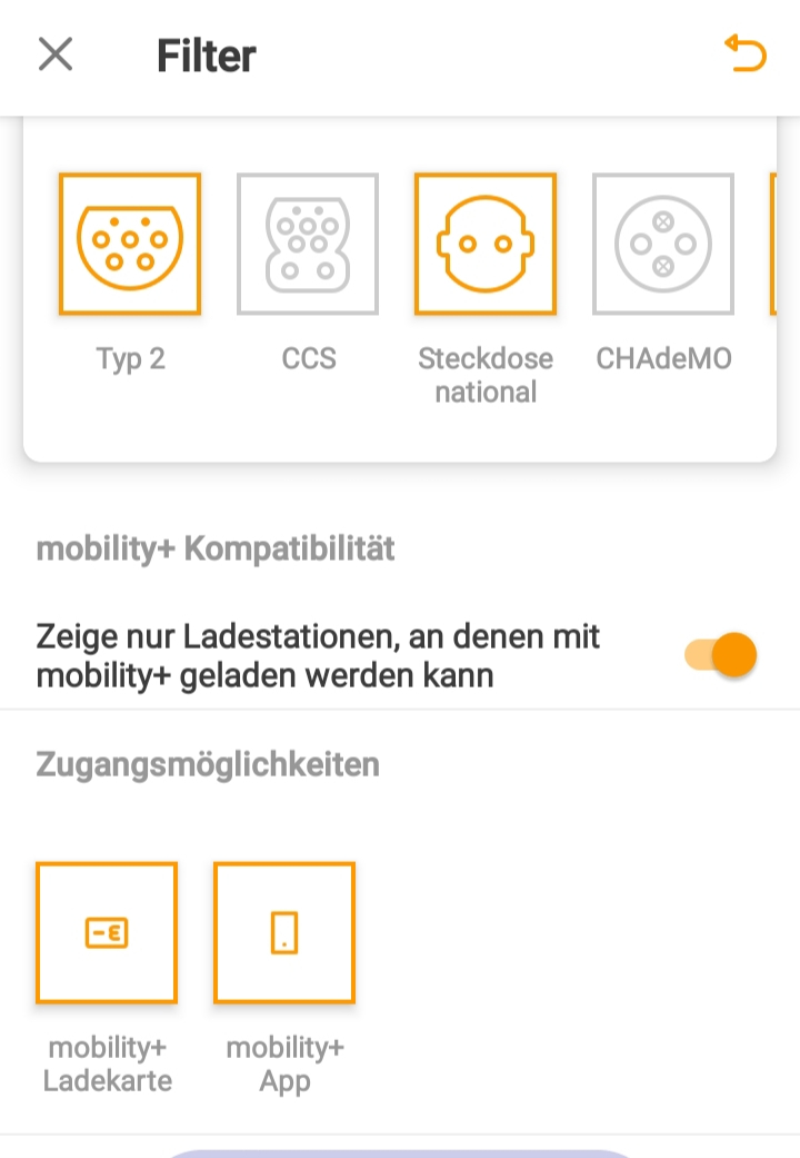 Ich habe bei den Filter-Einstellungen bewusst nochmal darauf geachtet, dass "nur verfügbare Ladesäulen" sowie Typ 2 und Schuko ausgewählt sind und keine anderen: Ich bekam genau die Ladesäule wieder angezeigt, an der ich vor Ort gescheitert bin - und die Navigation wollte mich wieder hinführen ohne Hinweis.