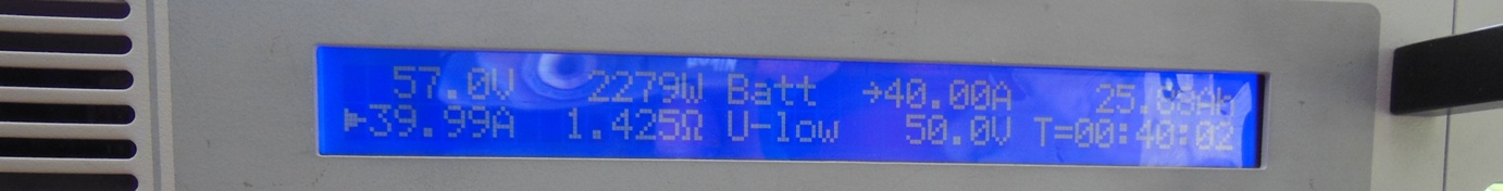 Ich hatte Angst die Elektronische-Last geht mir bei 50A in die Übertemperaturbegrenzung. Bei mir unterm Pavillion hatte es gefühlte 45Grad.