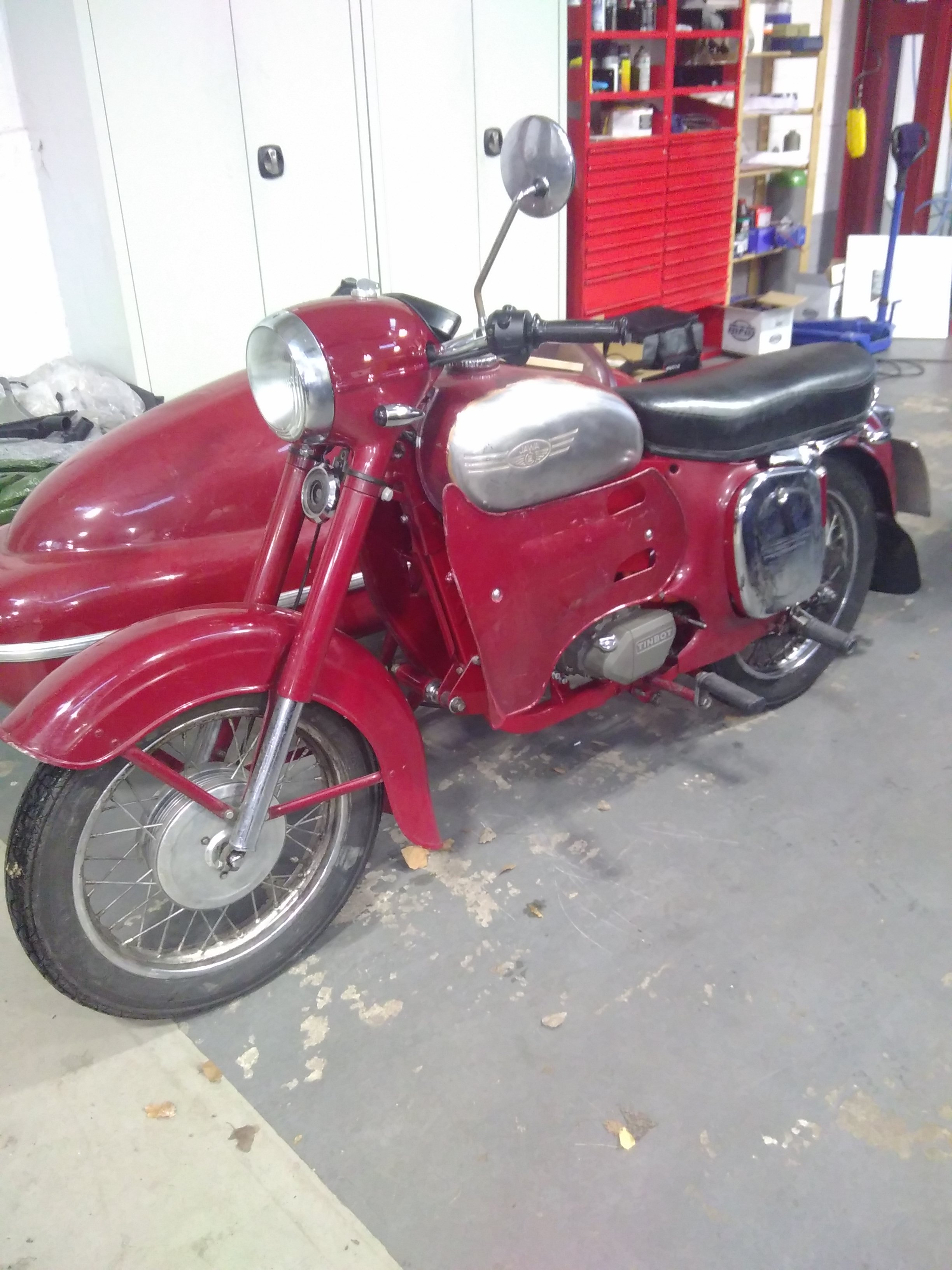 Die Jawa hatte trocken 132kg, jetzt etwa 20 kg weniger, macht 112. Das Gesamtgewicht schätze ich auf 200kg.