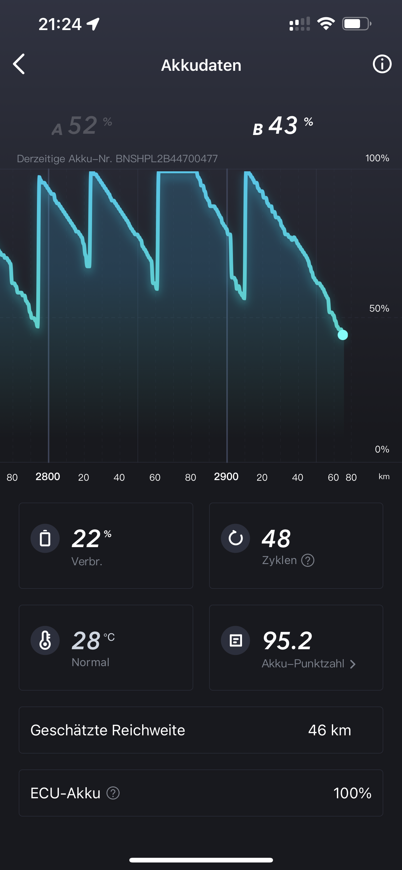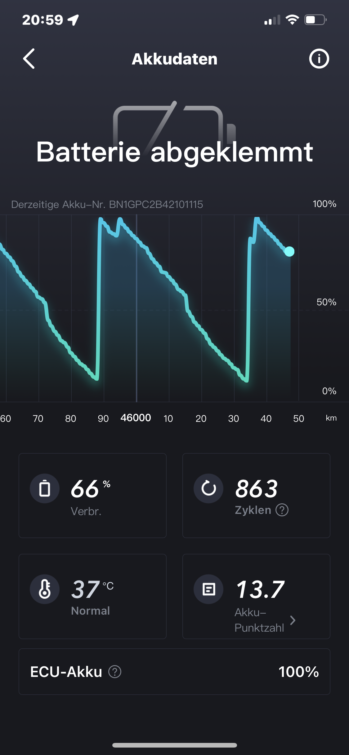 - 22.306km | NIU N Pro _______ | EZ 04/2019 | 1. Akku | 033 Zyklen I @ Bergziege (neues BMS nach 213 Zyklen)