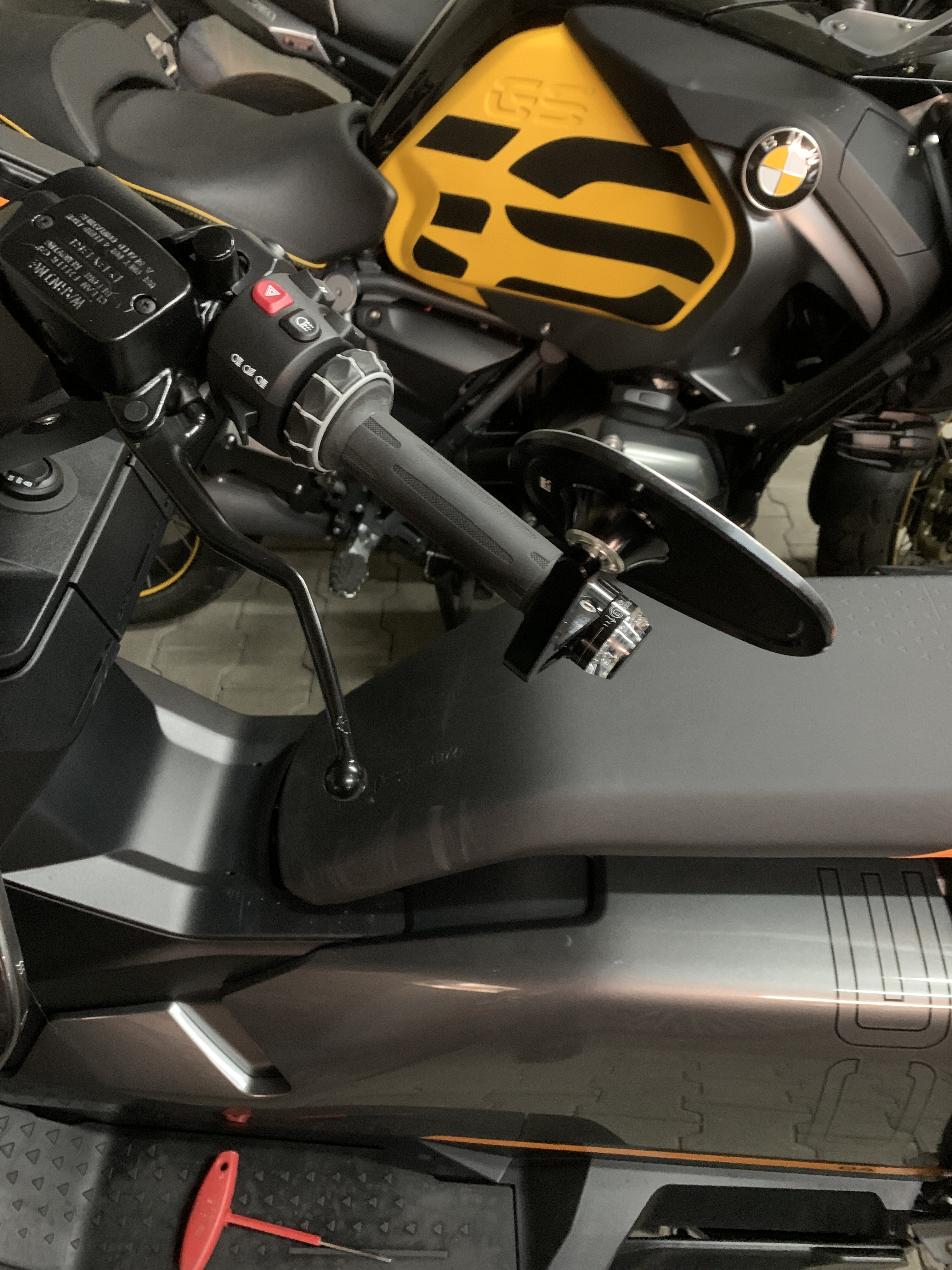 Genau, deshalb hat mir Norbert spezielle Adapter für die Motogadget Spiegel gedruckt. Garantiert schneide ich kein grösseres Gewinde in den Lenker des 15k Rollers