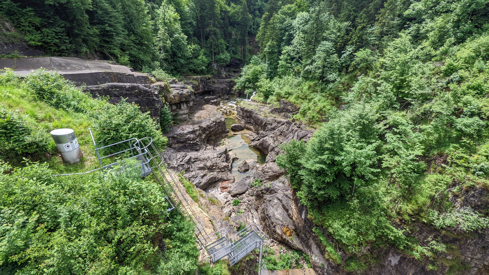 Alte Wiestalstrasse: Bei Wegscheid: Ein etwas bösartiges Foto, aber ihr wisst, loving it: Postalm-Parkplatzpanorama grade eben: