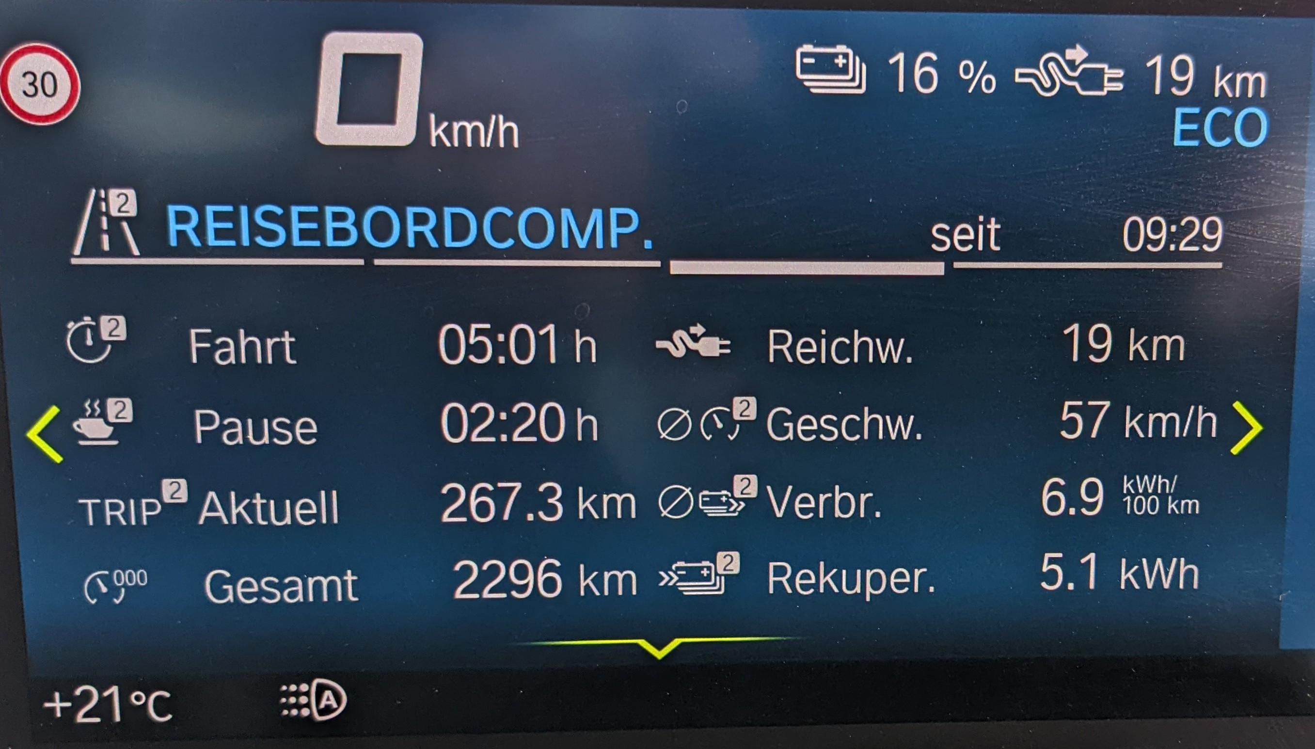 Das wird zB. mit einem angezeigten Durchschnittsverbrauch von 5,8kWh (/100km) belohnt, OHNE bewusst zu bummeln. (Im Gegenteil ...