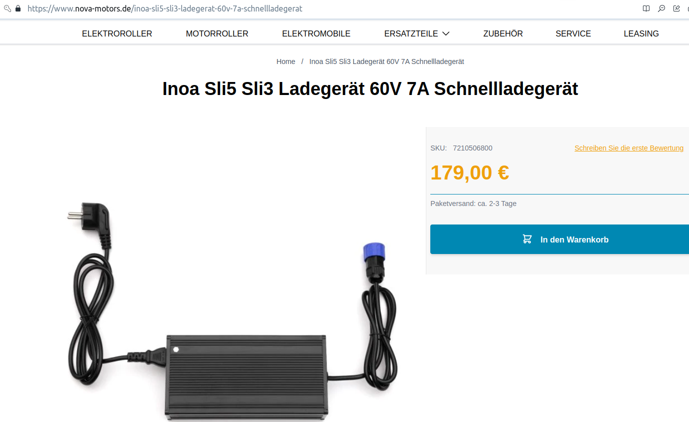 Gestern bekam ich eine eMail-Rückmeldung von Nova-Motors, dass das 7A-Ladegerät wieder vorrätig ist (vielleicht für den ein- oder anderen noch von Interesse):