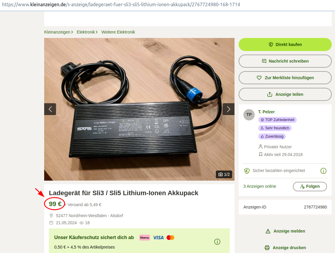 Gebraucht wird solch ein 7A-Ladegerät gerade auch bei Kleinanzeigen.de angeboten: