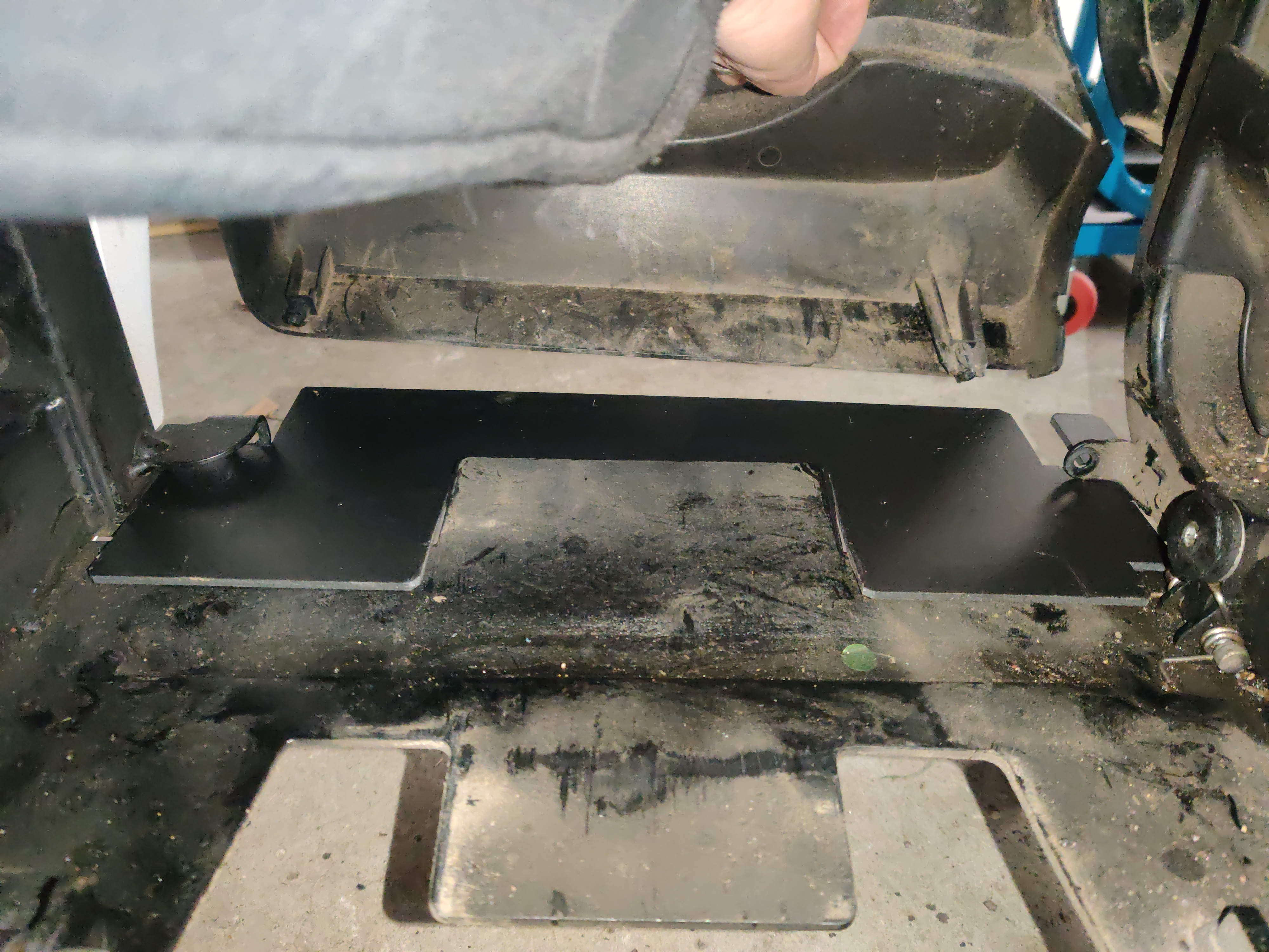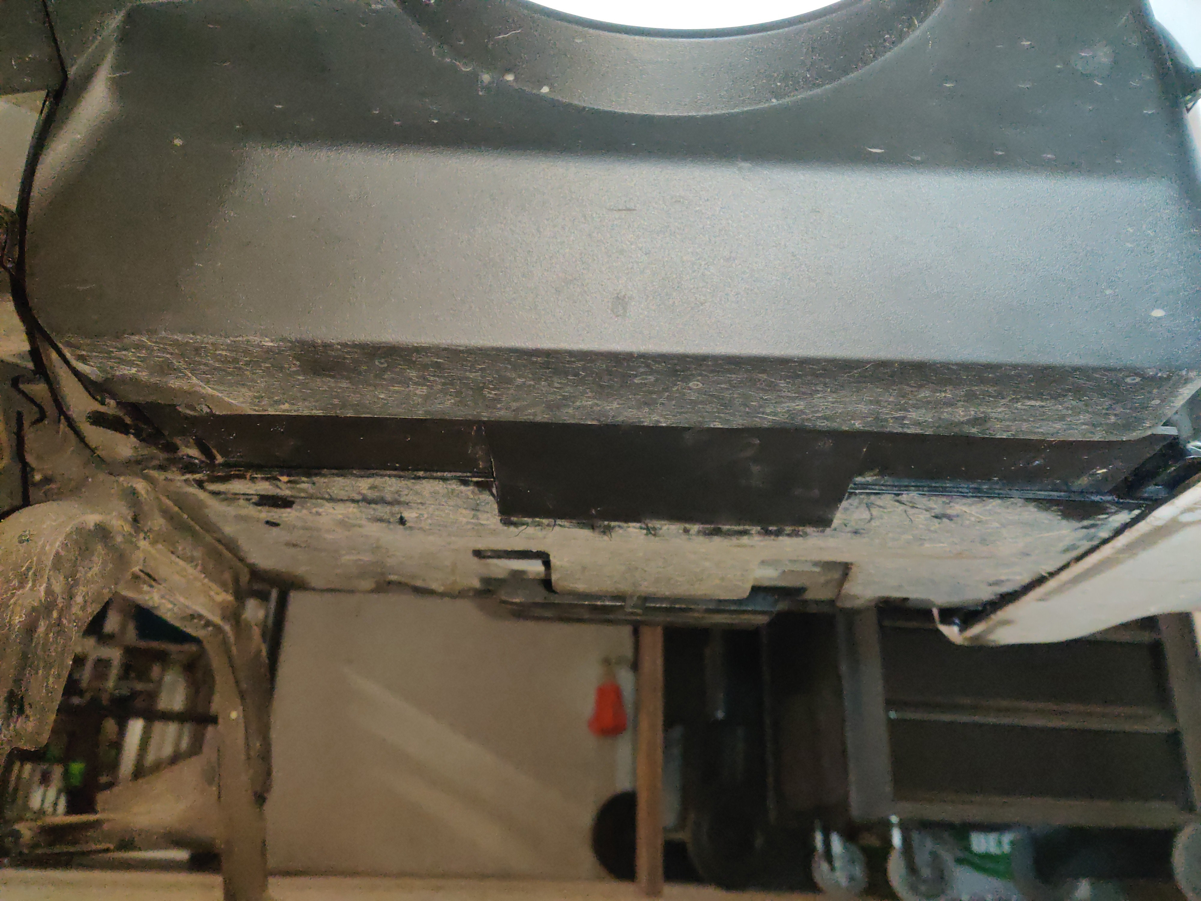 Die Abdeckung auf das Bodenblech aufstecken und dann die rechte Abdeckung wieder festschrauben. Von unten schaut das so aus: Ich denke damit hat man auch dort wieder einen Schritt in Richtung trockenes/sauberes Batteriefach gemacht.