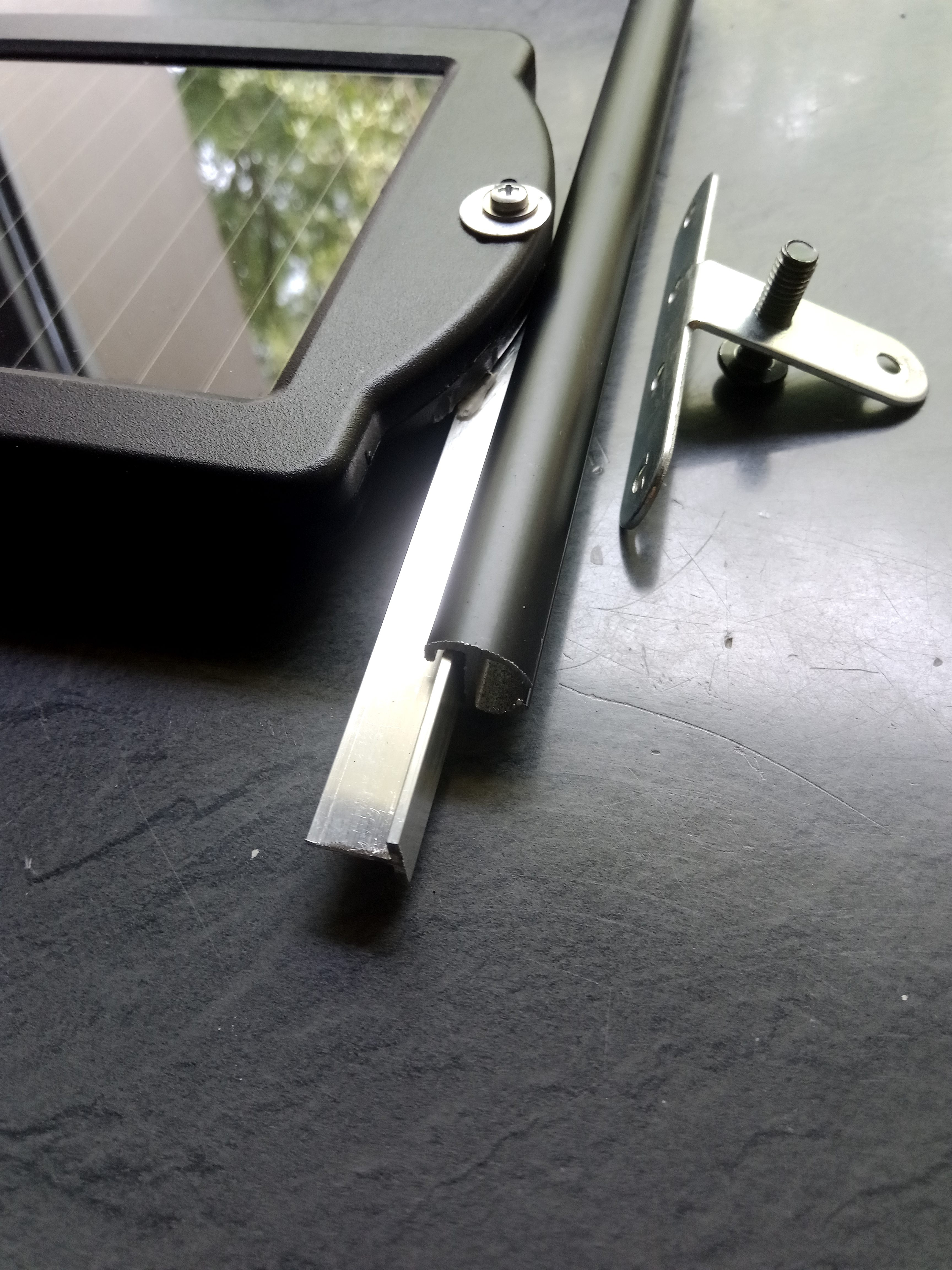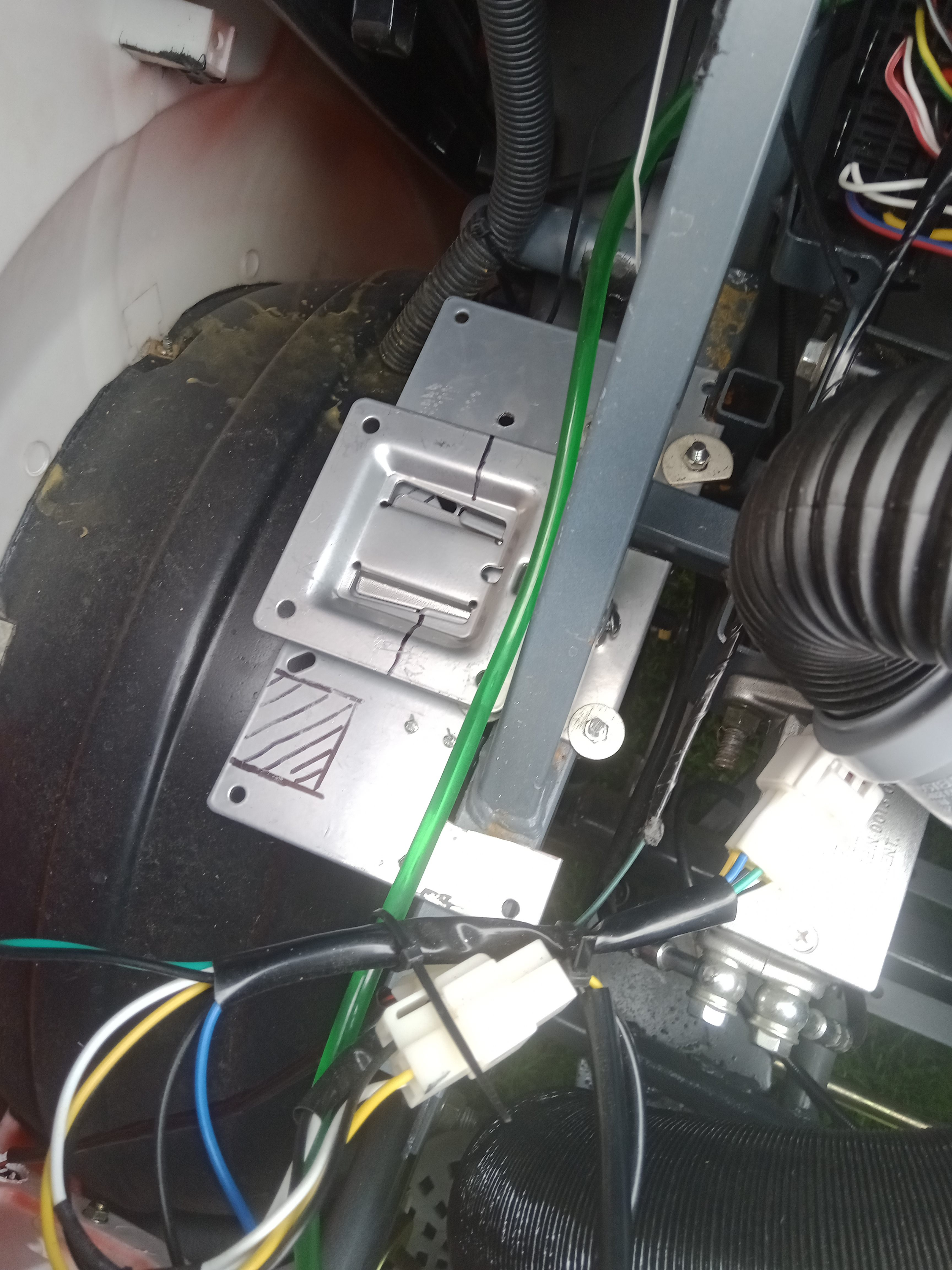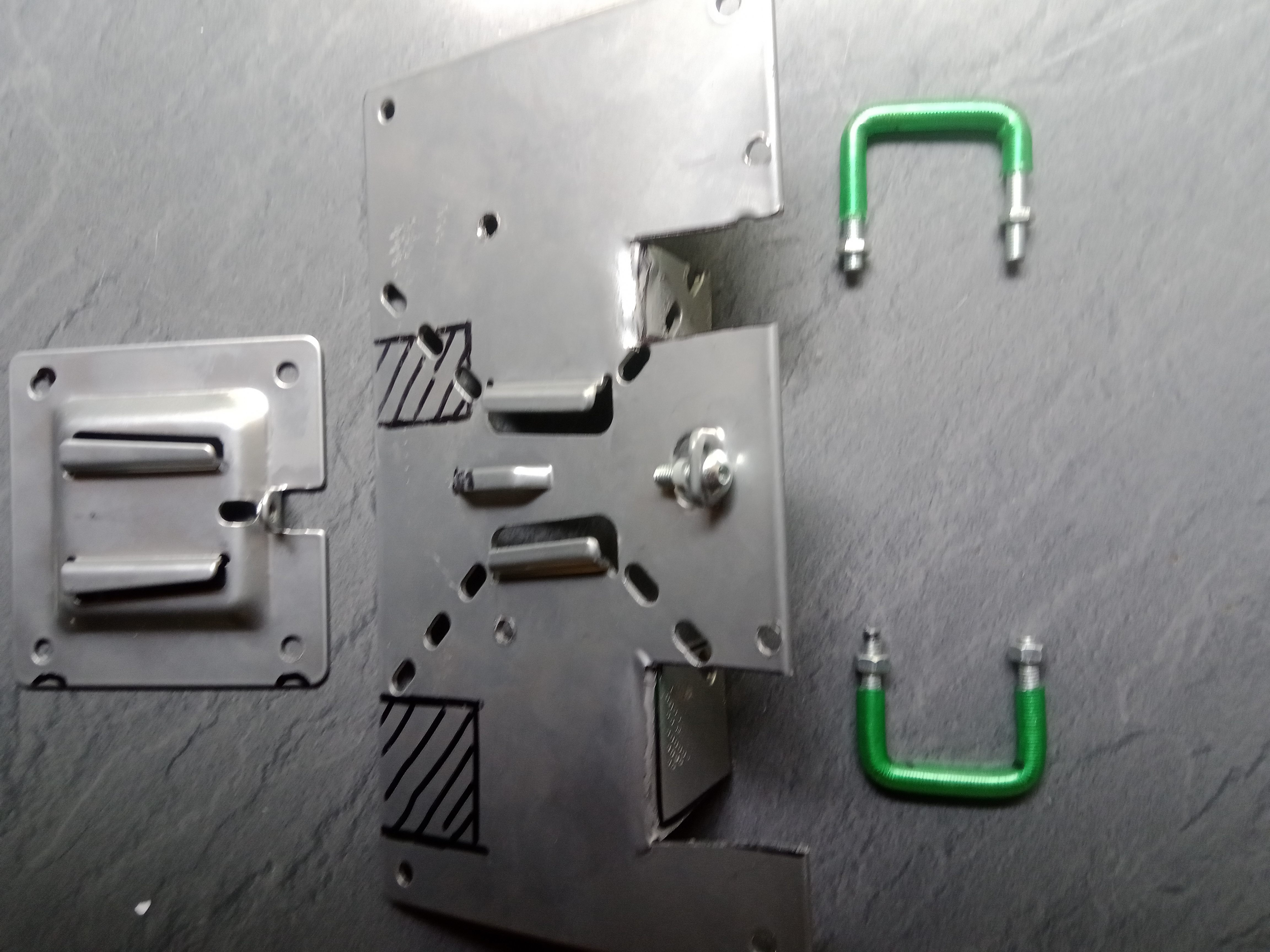 .Dafür ist der Zusatzakku fertig drin.Als Montageplatte dient eine einst fehlbestellte Flat TV Wandhalterung hervorragend.Eine Schraube lösen und meinen "Spezialstecker" abnehmen,schon kann die Akkukonstruktion entnommen werden.