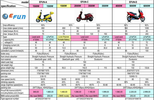 Wenn die CoC Papiere für sämtliche E-Roller zur einfachen Anmeldung ausreichen, dann sollte man vielleicht in dem Forum eine Einkaufsgemeinschaft gründen um gemeinsam ein kleine Stückzahl zu importieren. Im e-FUN Werk kann man ab 2 Stück in einem Container direkt beim Hersteller bestellen. Da kostet das C-Modell mit LiFePO4 dann umgerechnet ca. 1500,- Netto ohne Versand. Der wird mit 75km/h angegeben und kostet hier gut das doppelte. Die Herstellerangaben sollten eigentlich schon stimmen. Er wiegt ja nur ca. 100kg. Da könnte sich der Import lohnen (bleibt nur noch das Gewährleistungsprobelm im Störfall).