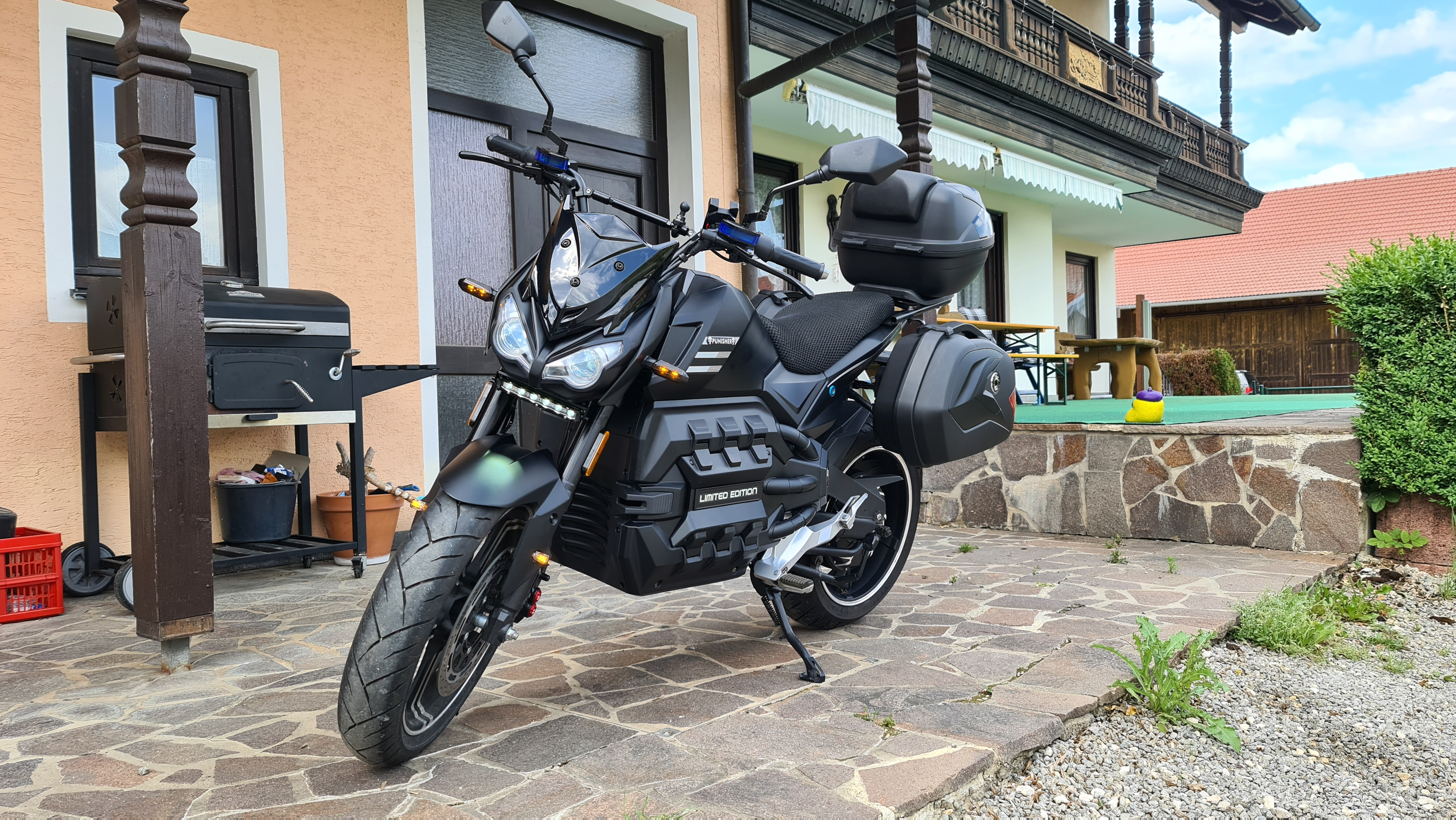 Gestern und heute hatte ich wieder mal etwas Zeit zum basteln an meiner E-Odin 2.0. Ich habe mir ein zusätzliches Bremslicht angebaut, weil das vorhandene wohl nicht so gut am Tag zu erkennen ist und mir fast einer hinten rein gefahren wäre. Ich habe den Reflektor hinten gegen einen mit LED ausgetauscht und auch gleich das offene Loch von der Kennzeichen Halterung mit eine LED versehen. Da mein Scheinwerfer keinen großen Schein wirft, habe ich mir ein Arbeitslicht angebaut, damit ich im Dunkeln bei mir zuhause auf dem Schotterweg besser sehen kann. Seit längerem störte mich schon das mein Topcase bei schlechten Straßen immer klappert. Heute wollte ich mir das mal anschauen, und stellte zum meinem Entsetzen fest, daß sich das Topcase im abgeschlossen Zustand entfernen ließ. Ich habe das Case jetzt angeschraubt und kann somit ihn nicht mehr abnehmen (hatte ich eh noch nie).