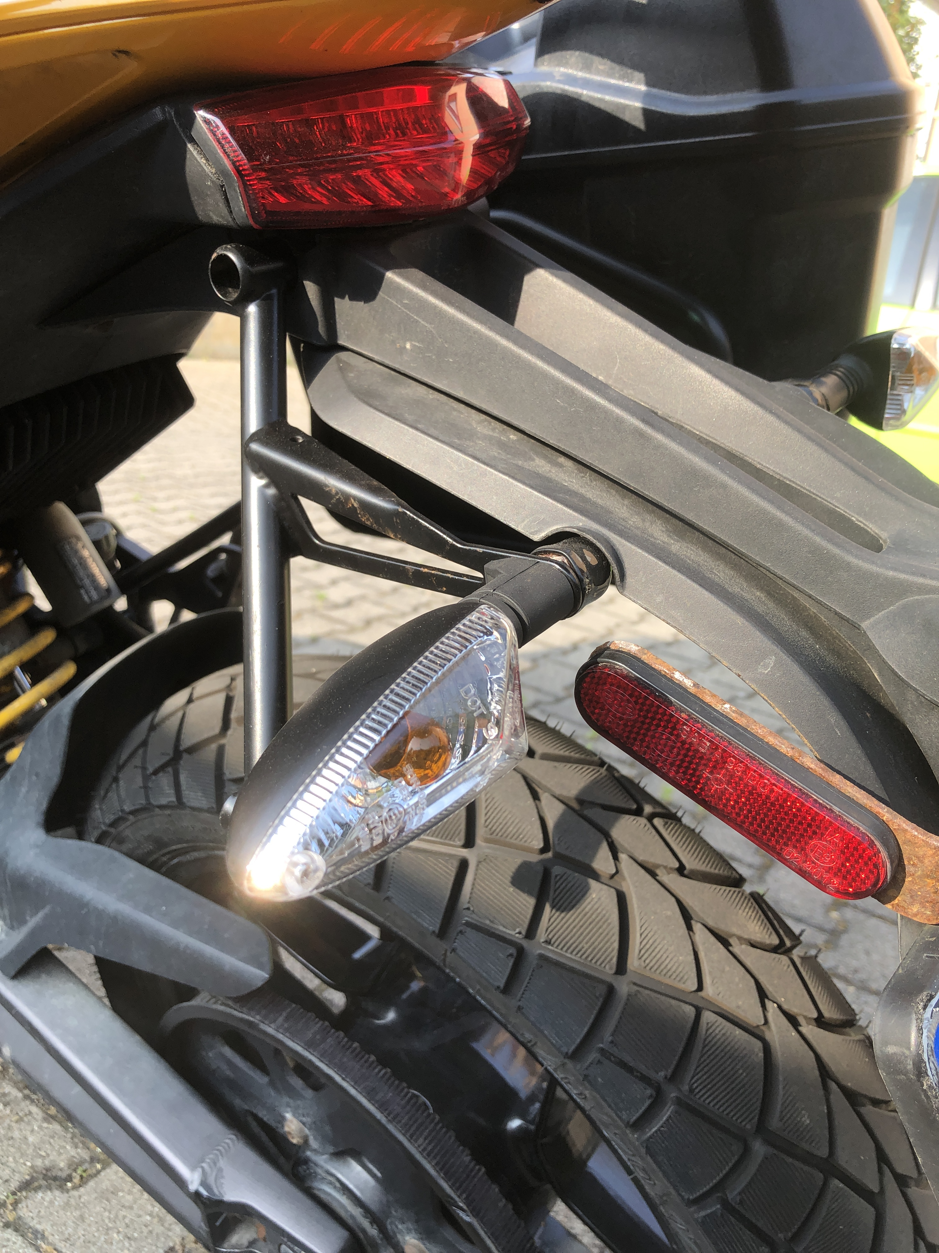 Den Blinker hinten links hatte ich schon vor ein paar Tagen montiert. Leider fehlt immer noch der neue Seitenkofferrahmen.