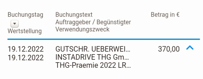 Ich habe heute die 2022er THG-PRÄMIE erhalten