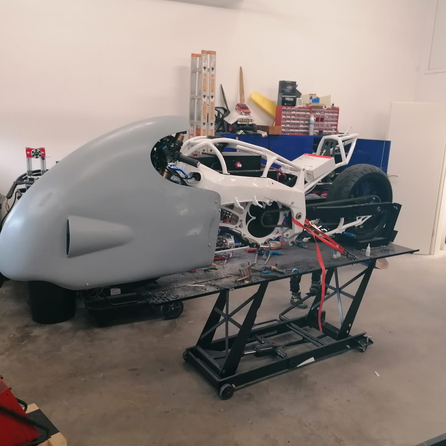 Dann hatte ich ja noch einen Hersteller in Belgien gefunden. Er baut so eine Verkleidung aus Aluminium ebenfalls für 6k€+ und er benötigt mein Bike für die Anpassung!