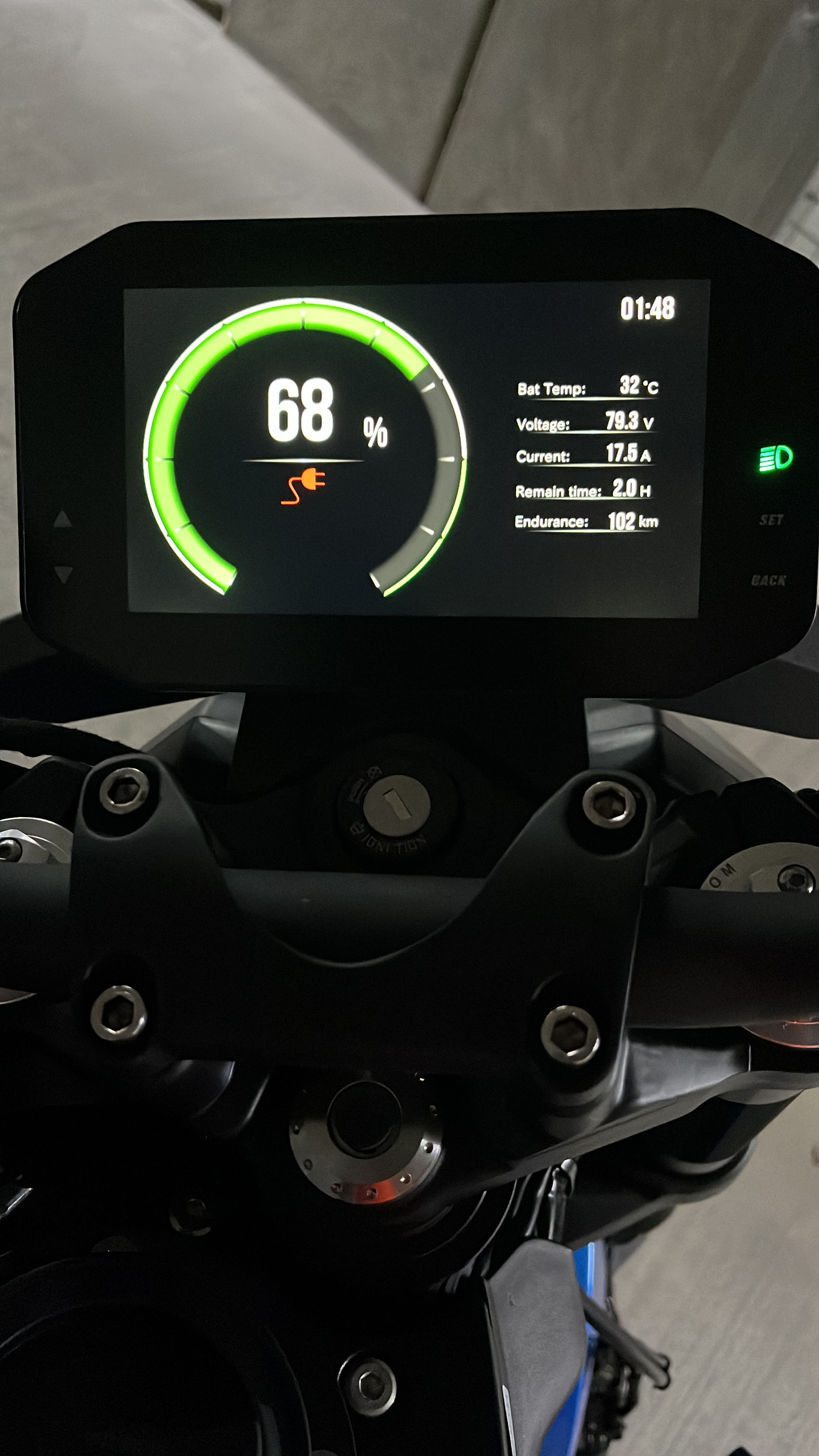 Der Akku war dann auf 29% Und auf der Autobahn war ich nur Vollgas unterwegs. Berg hoch schafft sie laut eigenem Tacho 120 km/h.