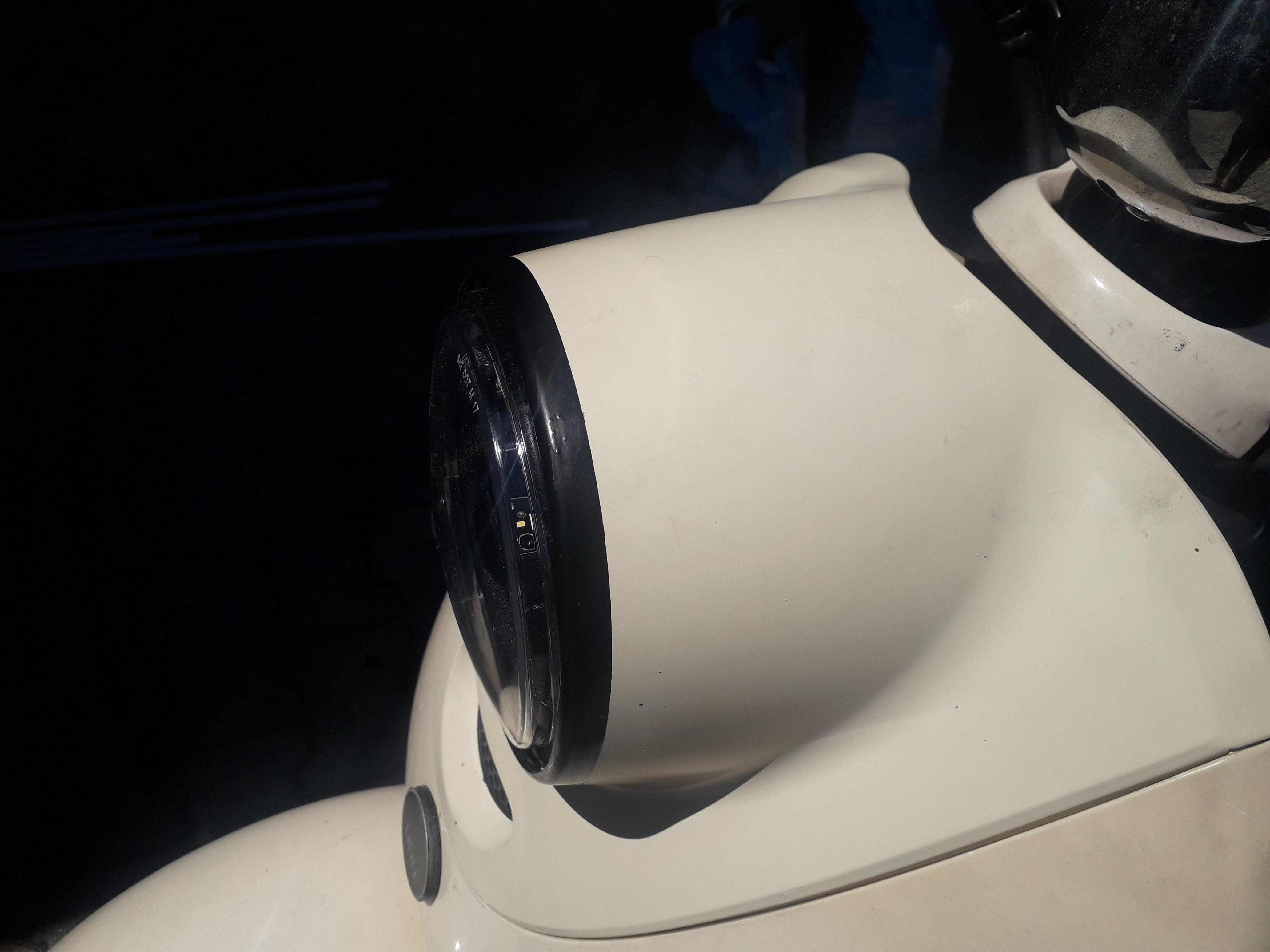 Ich habe mir ein Leuchtmittel mit LED von Ebay eingebaut. Ich weiß, dass es nicht erlaubt ist, aber das Licht ist damit deutlich besser, so dass ich bei Nacht auch die Löcher in der Straße sehe.