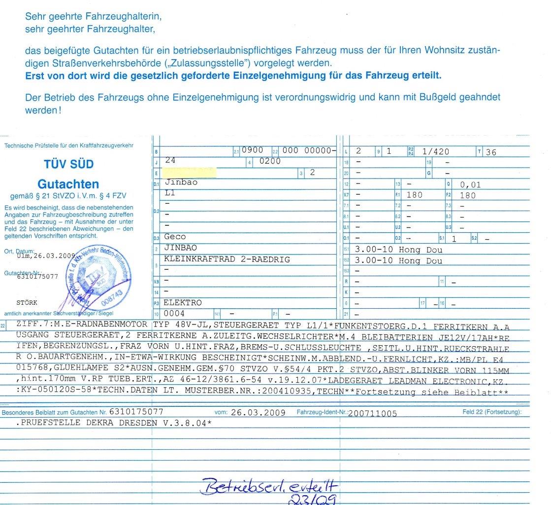 Mit Glück gibt es noch einen anderen Geco 1 - Fahrer, der eine Kopie der Papiere zur Verfügung stellen kann, Der Orginalhersteller JinBao ist wohl auch platt. Zündschloss gegen neues austauschen von einem Benziner, wie Joehannes schrieb. Und ja, nach 9 Jahren sind die Bleiakkus hinüber.