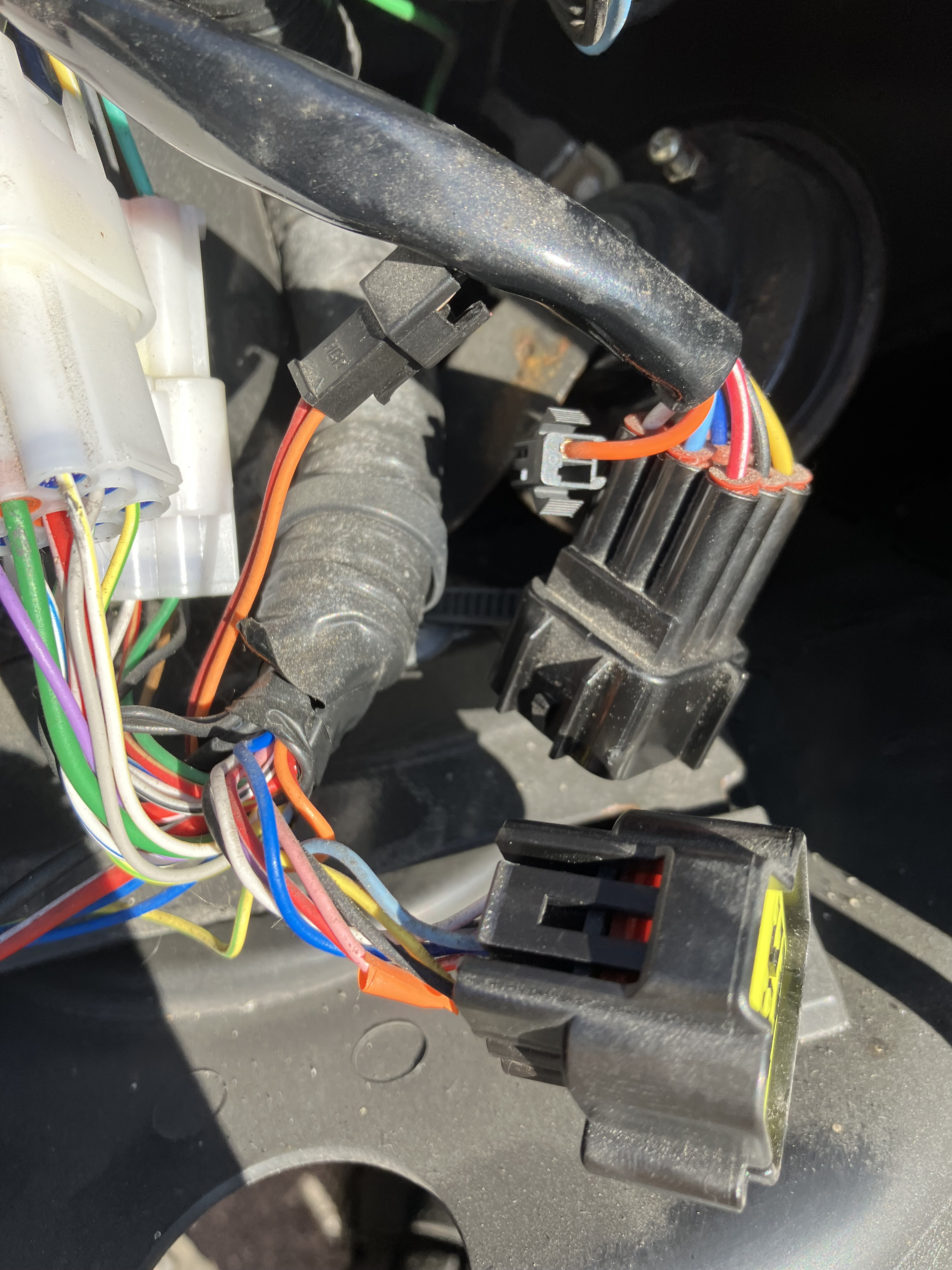 Die Stecker sind leicht zu identifizieren, das neue Display angesteckt und Funktionstest gemacht - ging. Die alten Kabel sind alle sehr eng und mit Kabelbindern zusammen. Ich habe das alte Kabel am Stecker durchtrennt und ausgefädelt. Für das neue Kabel habe ich mir einen anderen Weg gesucht. Nicht schön aber selten. Zusätzlich den Stecker und Zuführung mit Kunststoff umwickelt und mit Elektroisolierband abgebunden.