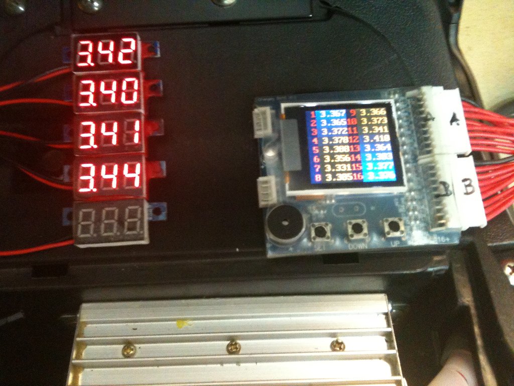 Laden dann mal nur bis 80%. In dem einem Bild sieht man mit dem Monitor die 16 Einzelspannungen beim Ladevorgang. Die restlichen 4 Zellen