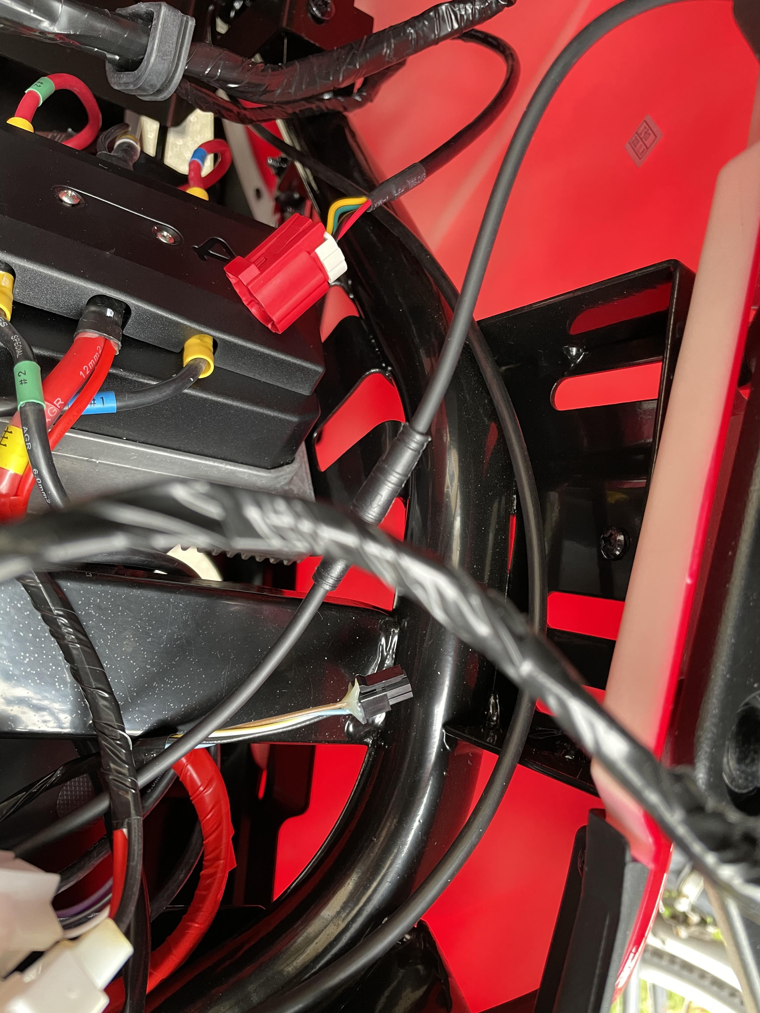 Hab das Kabel mit dem roten Stecker auch brav wieder, mit den beiden Akku-Kabeln nach draußen geschoben. Bleibt nur noch das kleine schwarze übrig was keinen Anschluss findet...