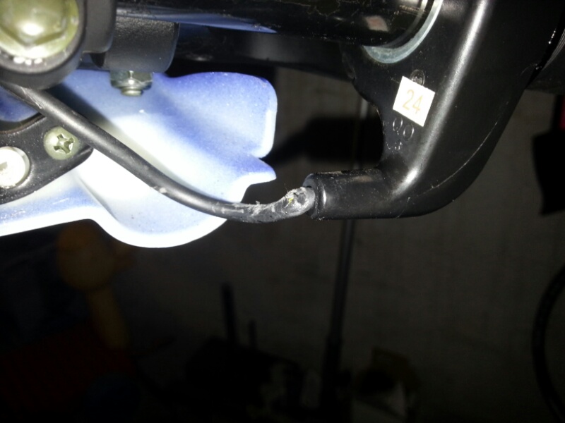 So, endlich zuhause und mal in der Garage gewesen. Lenkerverkleidung abgeschraubt - Man was für ein Pfusch (s.Fotos) Die Adern sind aber noch nicht frei - maximal gebrochen. Unten habe ich einen losen Stecker gefunden der aber scheinbar kein Gegenstück hat. Das Rad dreht sich nicht leicht aber auch nicht schwer. Auch kein teilweiser Schwergang. Das Zucken kann ich nicht reproduzieren bei Raddrehung. Es tut sich rein gar nichts. Mehr konnte ich jetzt in der dunklen Garage nicht machen.