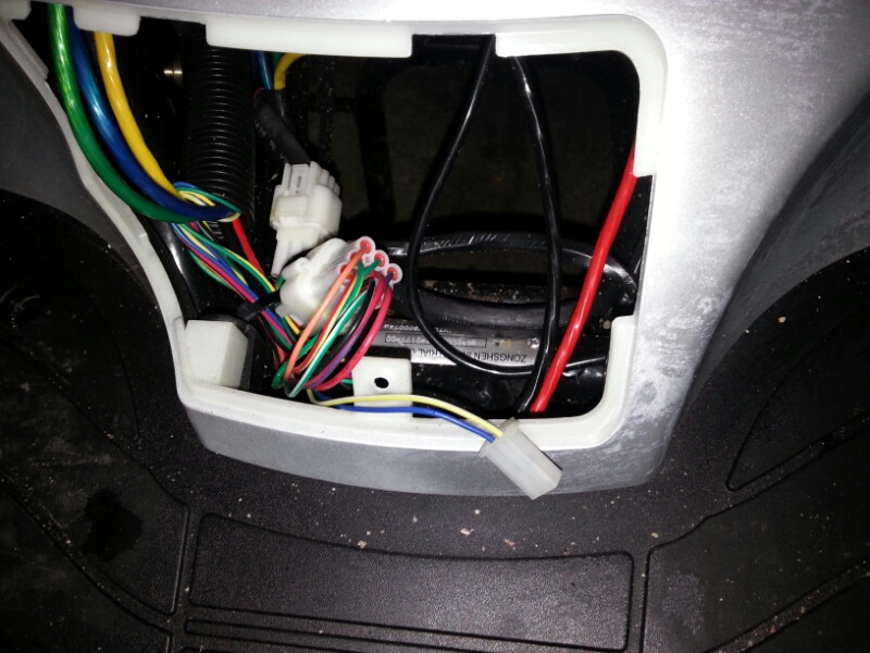 Da ist noch so eine Art Klemmverteiler. 3 Bunte Kabel Motor Zuleitung und das Battriepack gehen da rüber