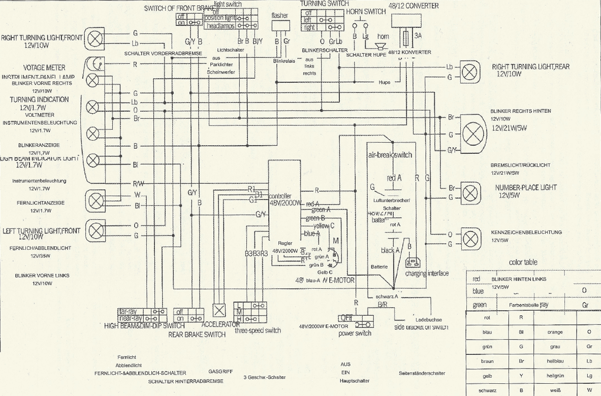 @ Peter51: Danke!!! Das kann ich alles mit meinen Mitteln prüfen. Schwer wird nur, die richtigen Adern zu finden. Ich bin kein Schaltplan Versteher - weiß jemand wofür die 1 hinter den Gasgriff Farben R1,B1,G1 steht? (s.Schaltplan) Oder ist das nur Synonym für "die Adern sind in einem Kabel"