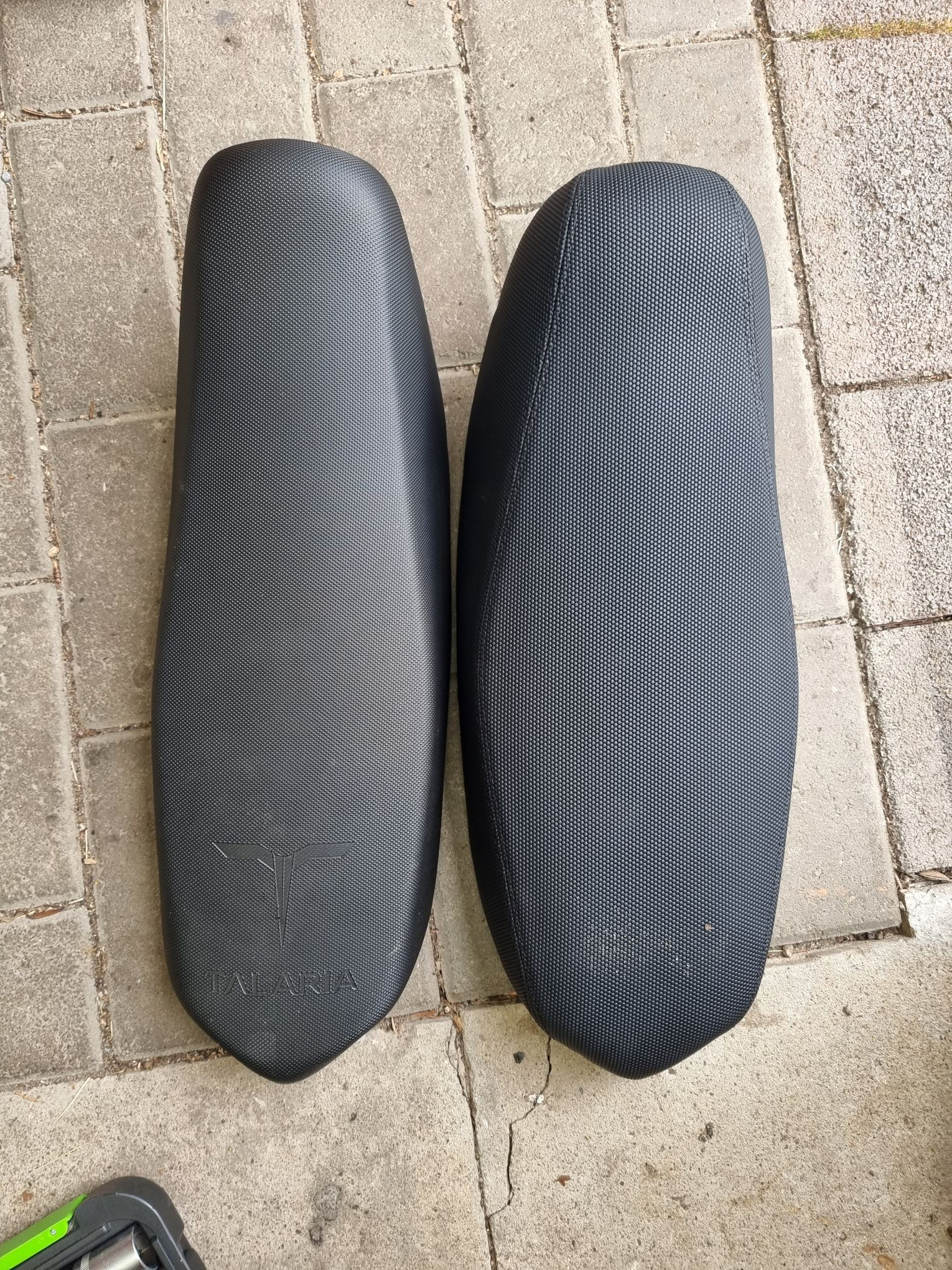 Heute bin ich mit der neune deutlich härteren Sitzbank gefahren. Die 2 cm Höhe und Breite merkt man, der Kniewinkel ist viel angenehmer. Ich bin ca 45 min gefahren. Die Breite ist besser vom sitzen her. Aber das sie deutlich härter ist, ist nicht so gut. Welcher Sitz nun besser ist kann ich nach der kurzen Zeit noch nicht sagen aber die höhere Sitzposition ist viel besser. Einen Spritzschütz am Hinterread fürs Federbein habe ich auch noch angebaut davon habe ich aber noch kein Foto.