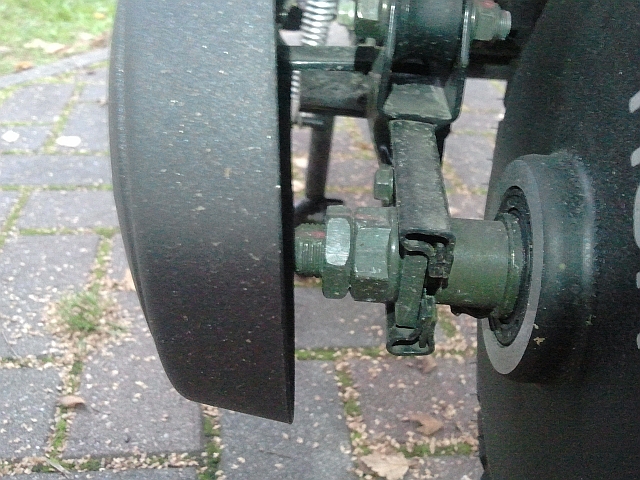 Zu den Imbusschrauben der Bremsscheibe: hier muß ich mich selbst beim Taiwanroller wundern, wie diese weichen Schrauben fest gezogen worden sind. Ich habe einmal einen Imbusschlüssel angesetzt, aber dann war ganz schnell die Überlegung, dass ich mir nicht ohne Not die Schraube vernölen muß.
