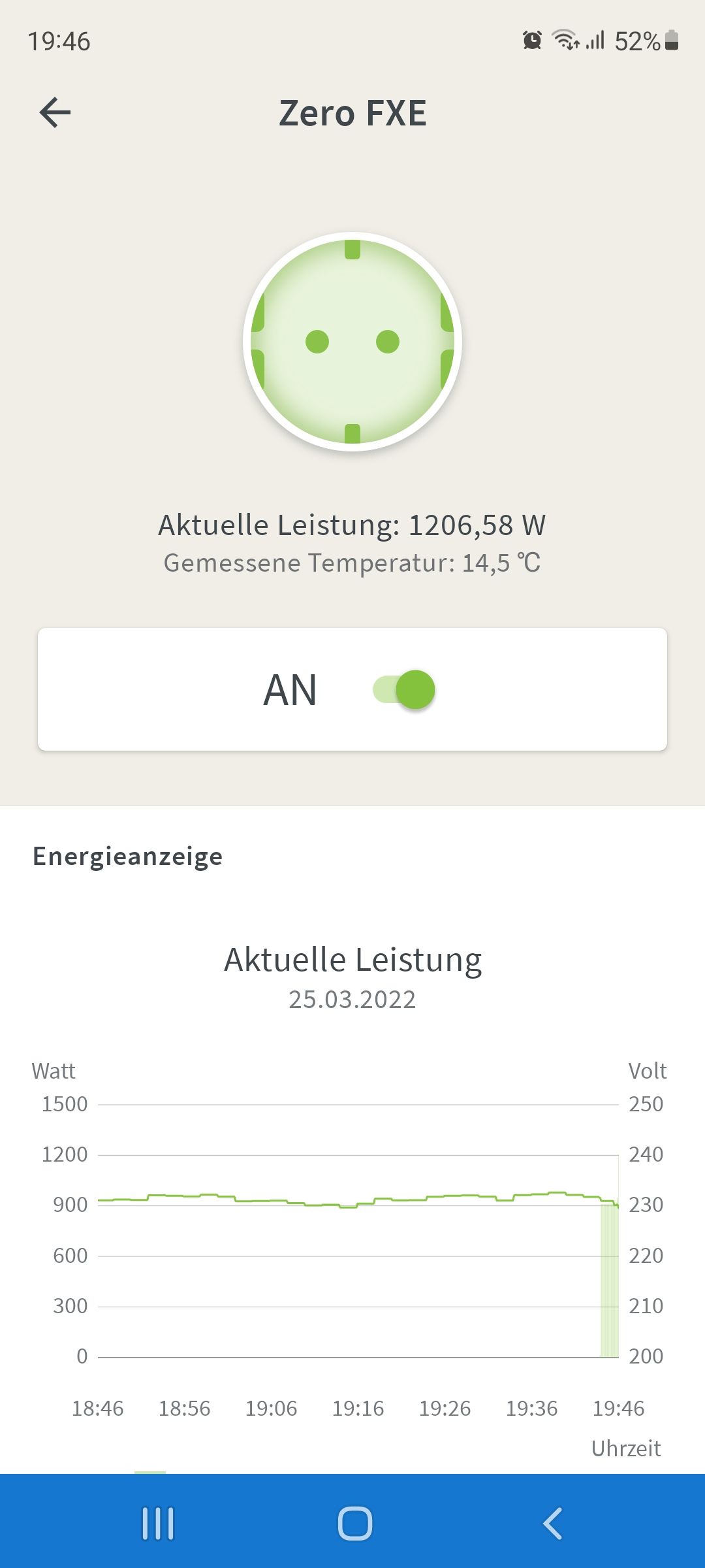 irgendwie hat es mir die Reihenfolge der Bilder jetzt durcheinander gebracht. Auf jeden Fall konnte ich über die Fritzbox schön sehen, wie die Aufnahmeleistung runter ging und dann war auch am Ladegerät die Abgabemenge 98.8V und 0 Ampere bei voreingestellten 10,7A