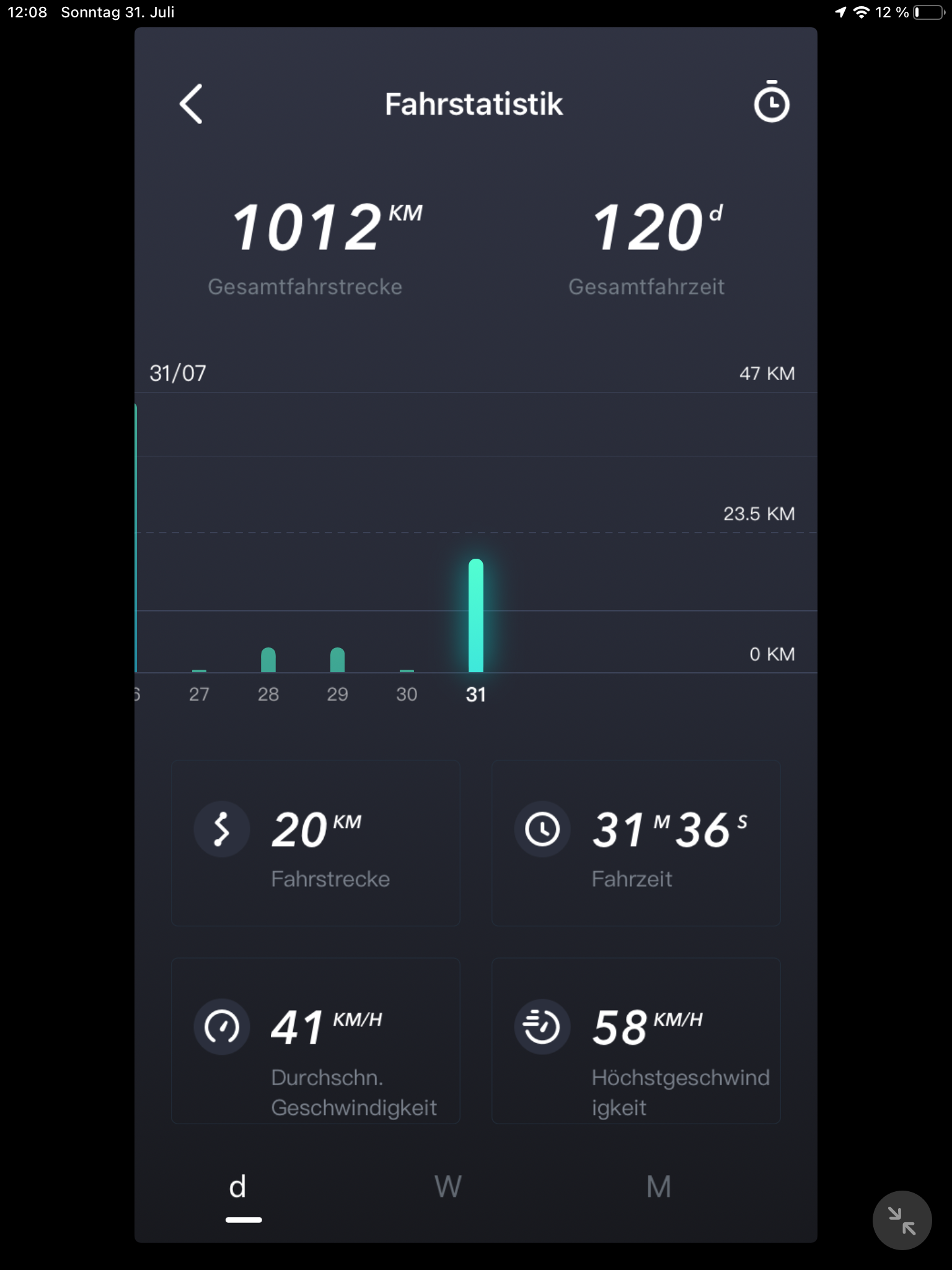 15.001 Kilometer und 164 Ladezyklen, und die App geht wieder, nach der war ich gestern in der Nähe von Bogota, wie erklär ich das meiner Frau ?