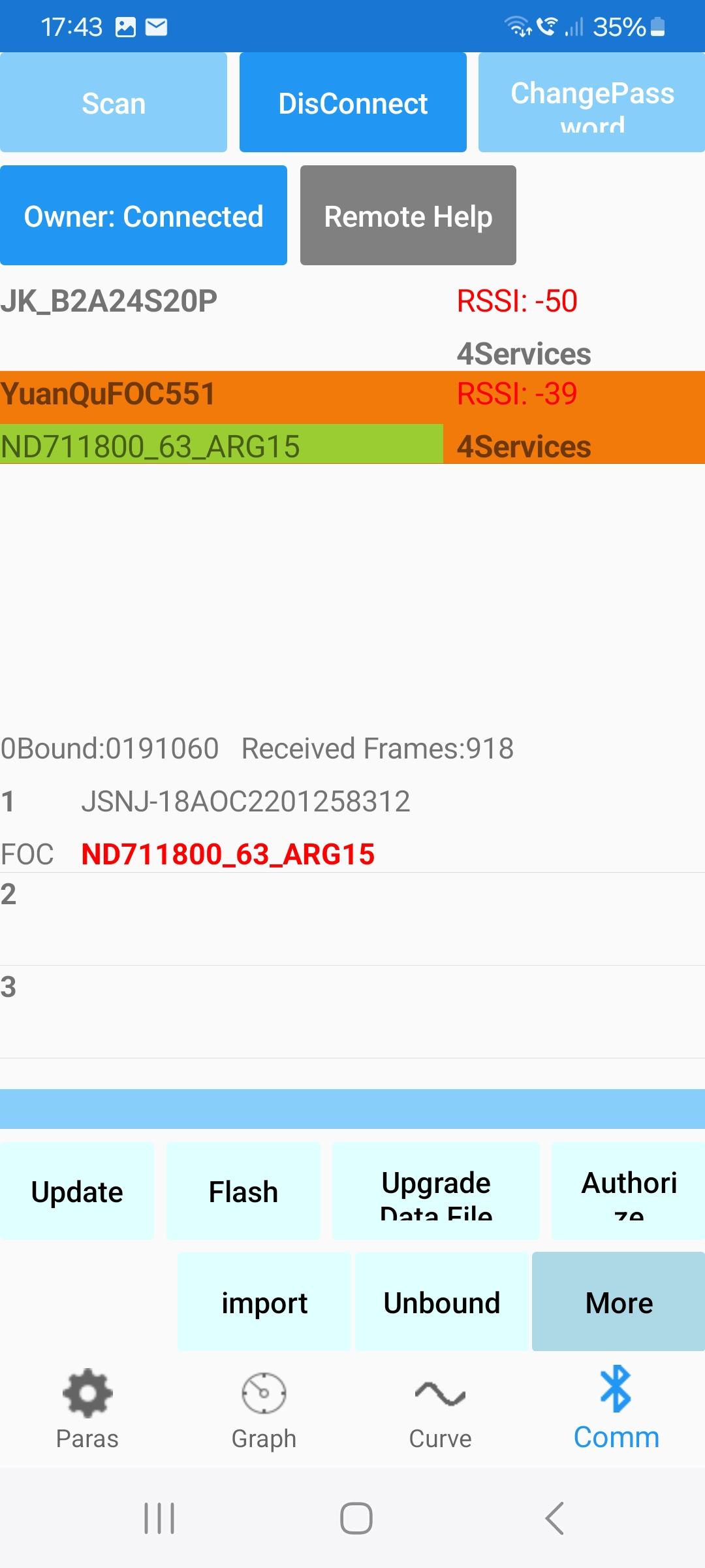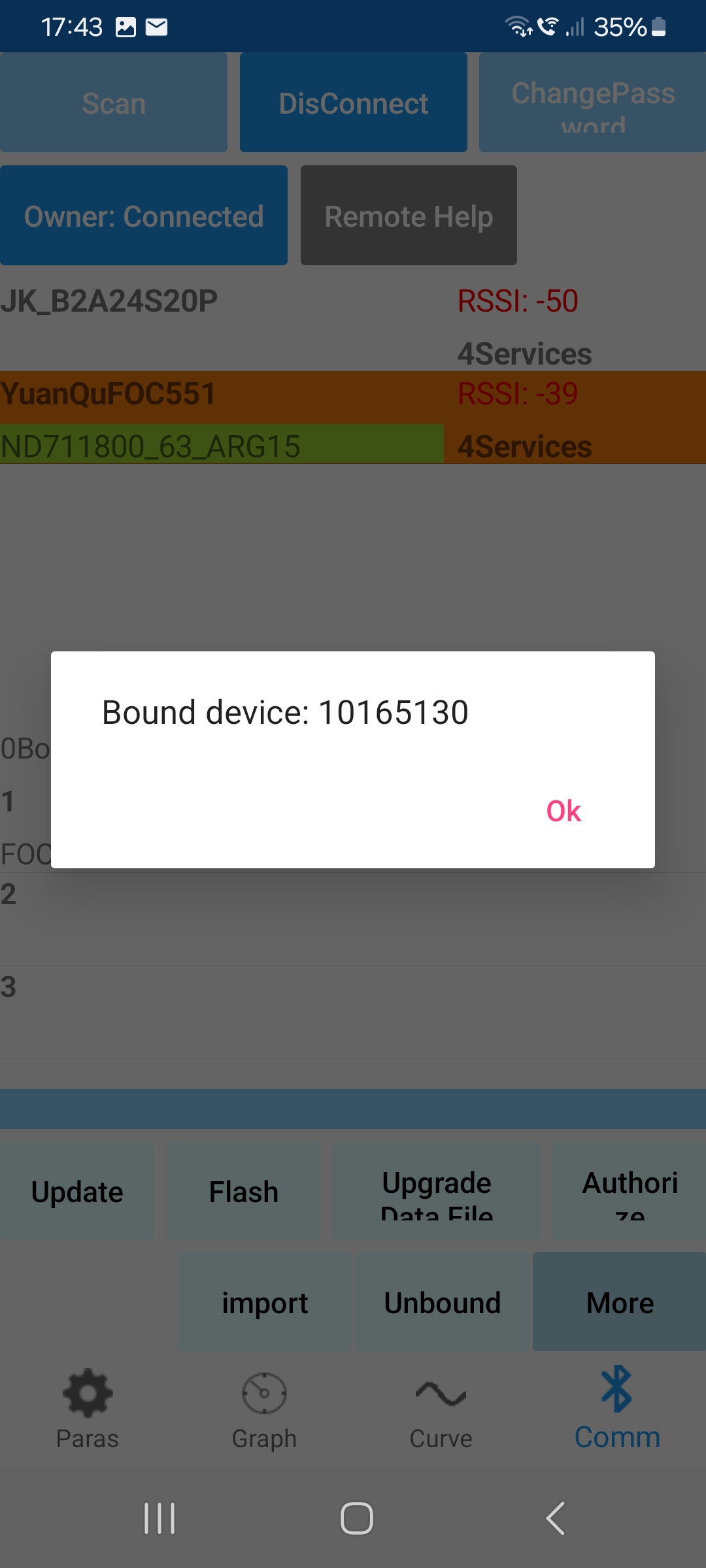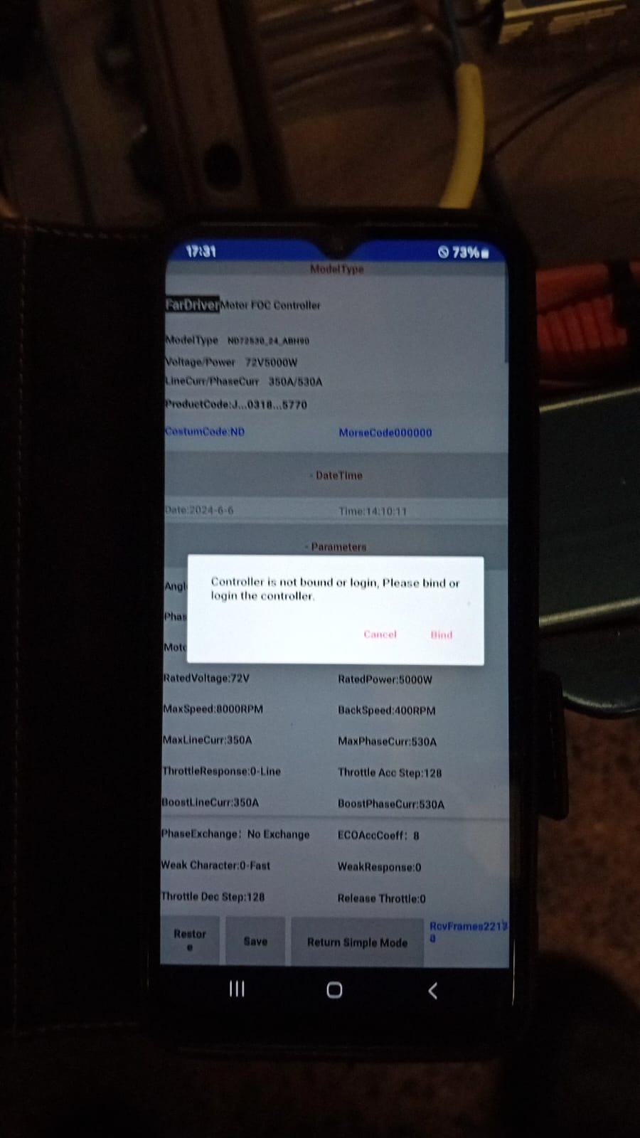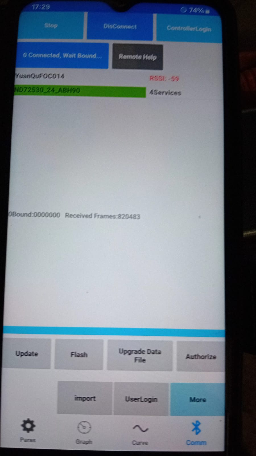 also heute morgen hab ich nochmal alles deinstalliert und neu gemacht. Und was soll ich sagen, es hat funktioniert. Ich hab sofort den Code bekommen. Natürlich bin ich sofort zu meinem TukTuk und hab es ausprobiert. Ja die App erkennt den controller und die Frames fangen an zu laufen. Aber oben links steht dann 0 connected, please login. Und es gibt ja zweimal login. einmal "User login" und oben rechts "controller login". aber woher bekomme ich oben rechts das Password? Ich hab ja alles korrekt verkabelt und die Kiste würde ja eigentlich laufen. Aber die Drehrichtung des Motors stimmt nicht.Er läuft rückwärts schnell und vorwärts langsam. Kann man die Drehrichtung irgendwie selbst verändern. Vielleicht durch Kabelumstecken oder so.