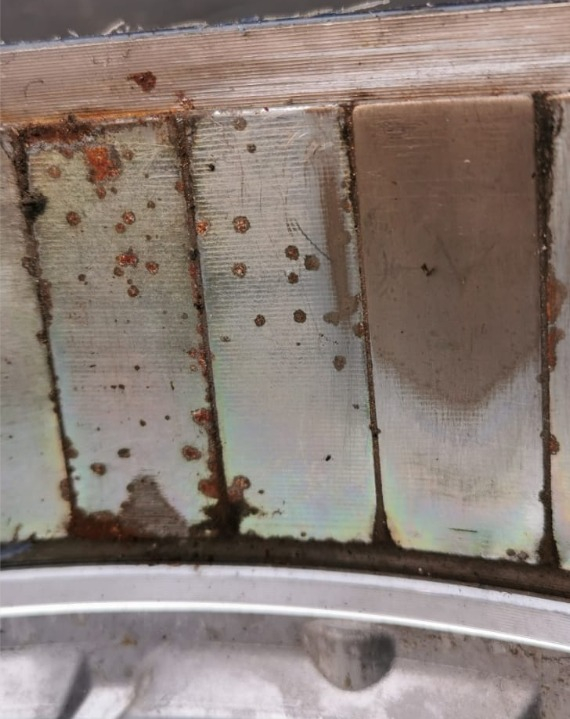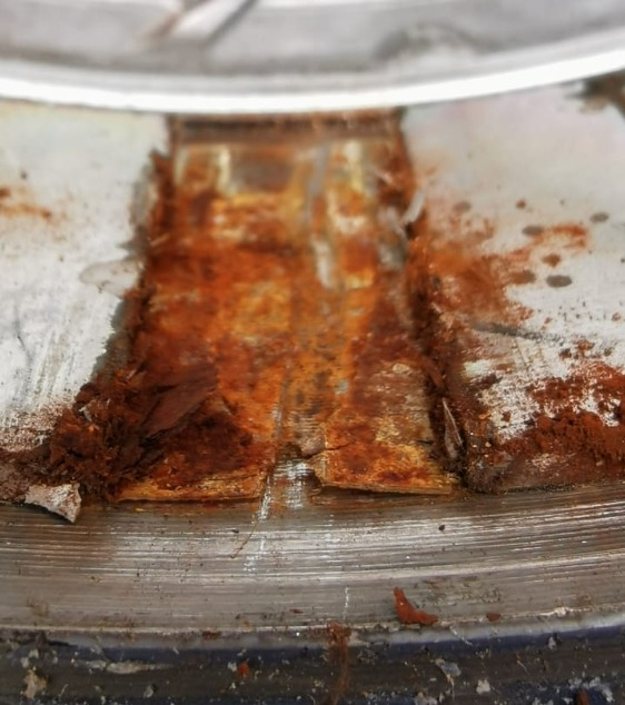 See how the plating was left behind, so it rusted underneath the plating itself.