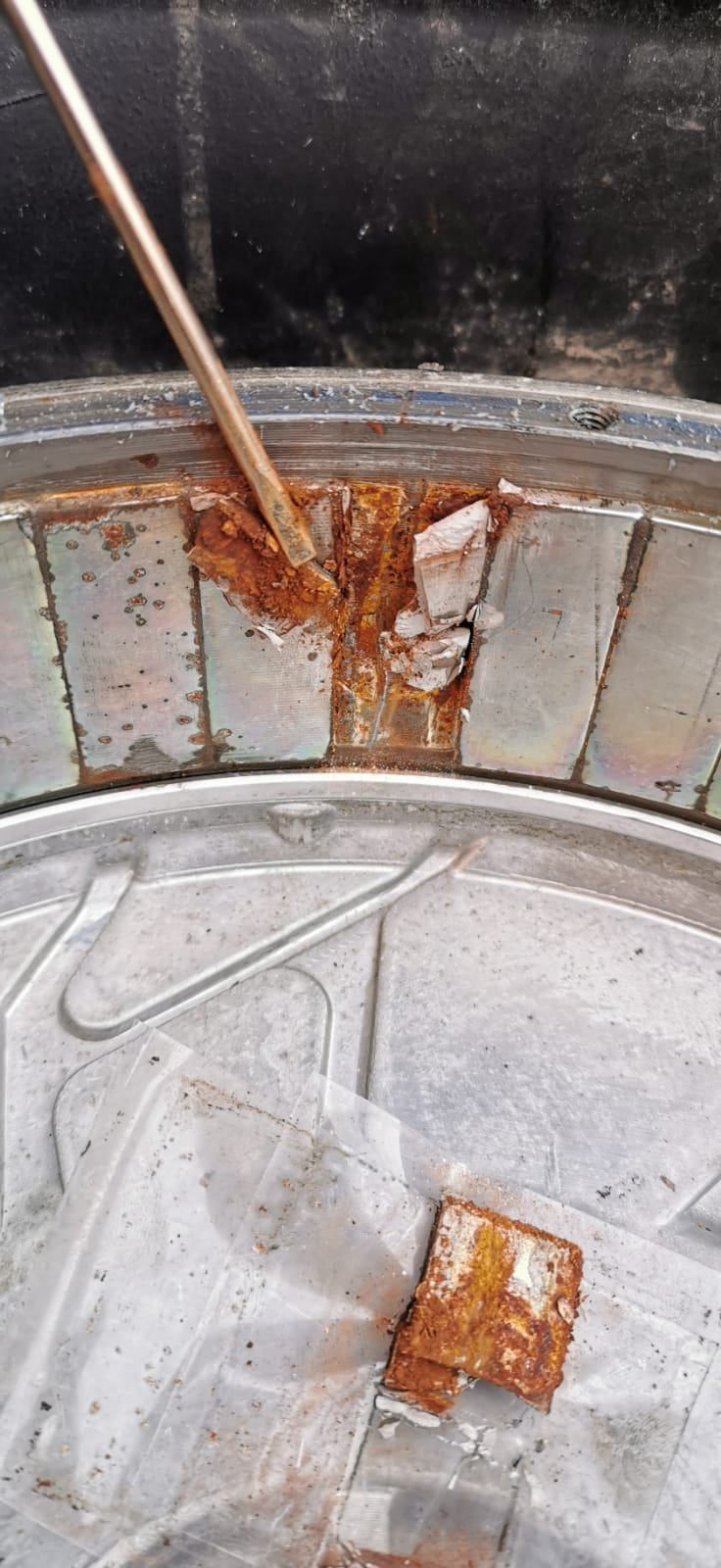 I cannot see any corrosion on the rim or the magnet to show bubbling underneath. I think it was just too much glue, didn't quite fit. Or maybe it was one-off magnet not quite right.