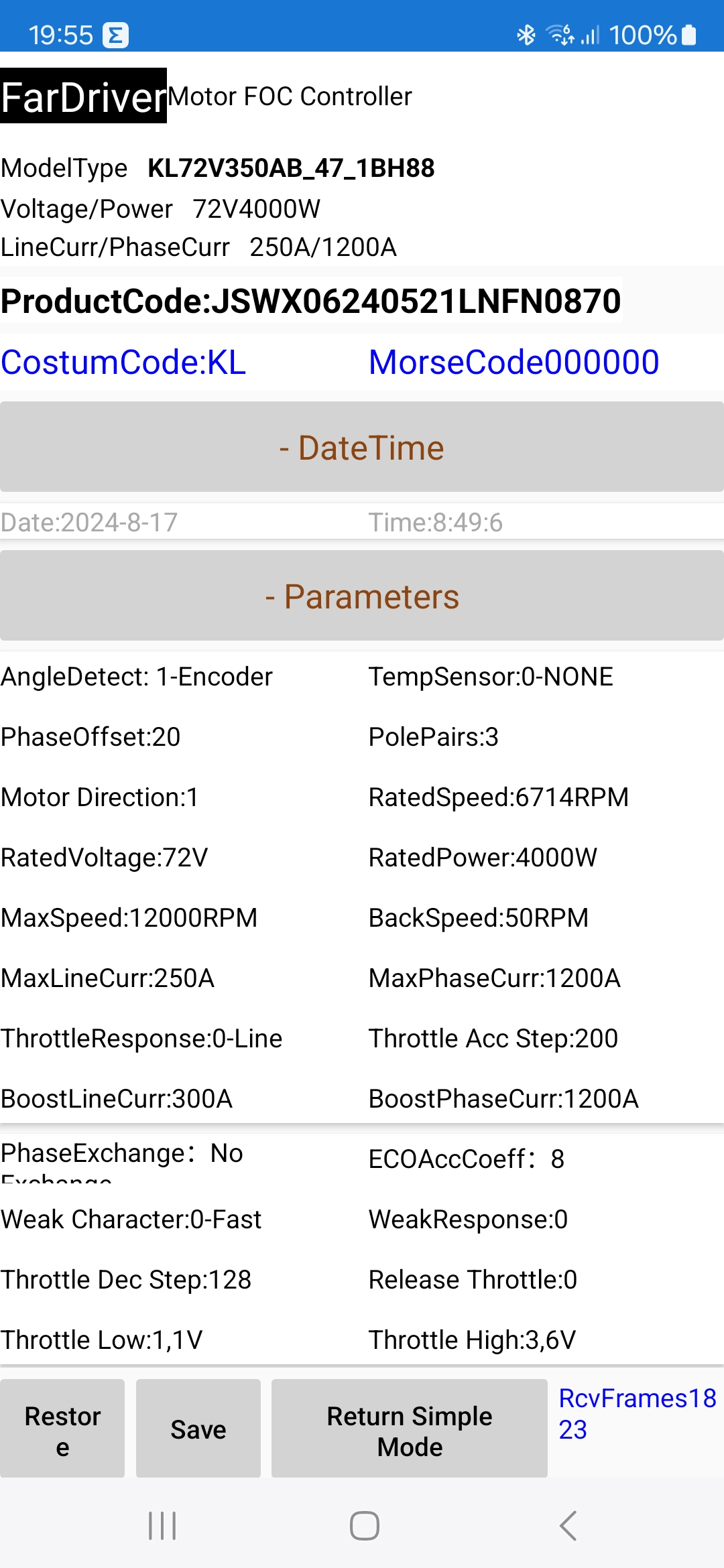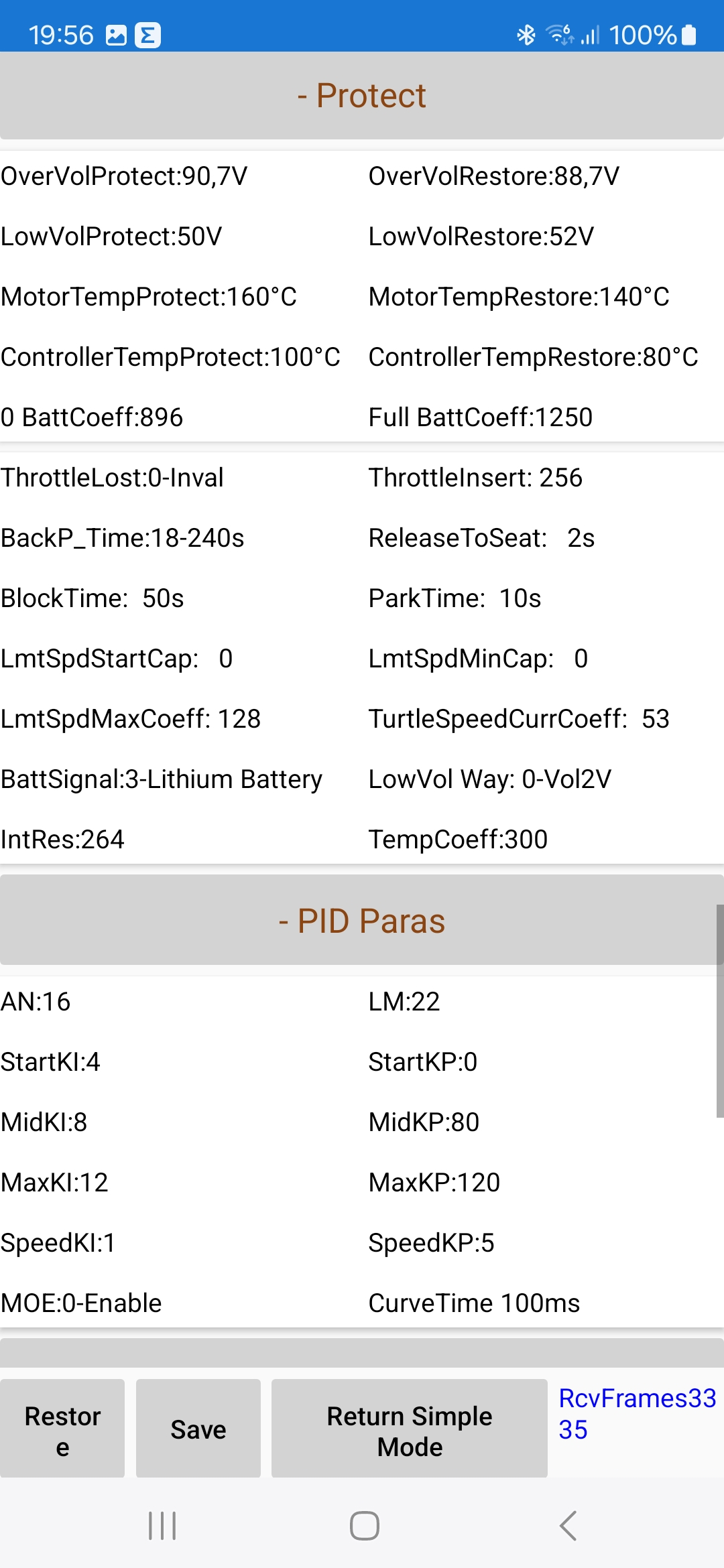 Das ist ja interessant, welchen Leistungspeak hast du bei den 250A Line Current? Kannst du den Line Current Wert nach oben ändern?Morkin hat geschrieben: Sa 28. Dez 2024, 16:43 Ich habe nun auch einmal die Parameter des Controllers ausgelesen.
