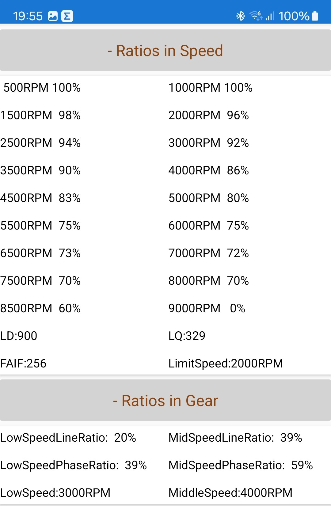 Die Ratios in Speed sind so eingestellt das der Controller bei 30 schon die volle Leistung, welche der eingestellte Batteriestrom zulässt, an den Motor raus gibt. Darüber müßte der Batteriestrom der begrenzende Faktor sein und nicht die eingestellen Werte bei Ratio in Speed.