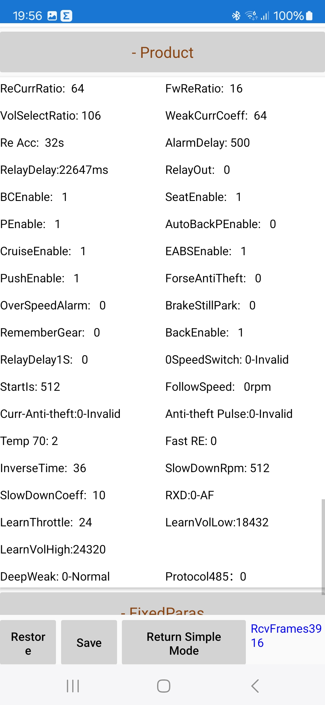 Ich habe nun auch einmal die Parameter des Controllers ausgelesen.