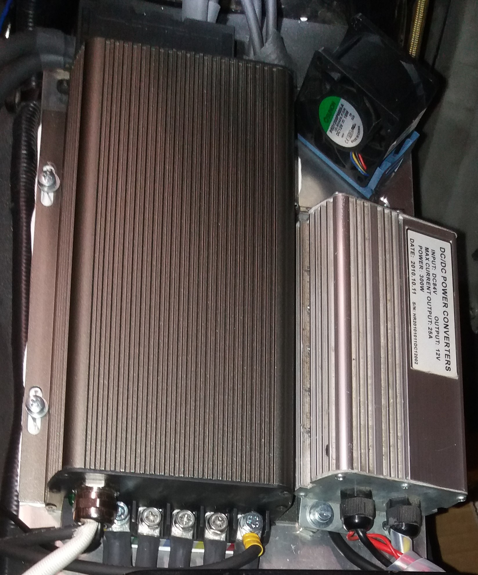 Die Turbine bläst den Controller seitlich an und der schräg eingebaute DCDC, dessen linke etwa 4cm unterlegt ist, fungiert als Luftführung, somit muss die Luft unter dem DCDC durch an der Alu Platte vorbeigeblasen werden.