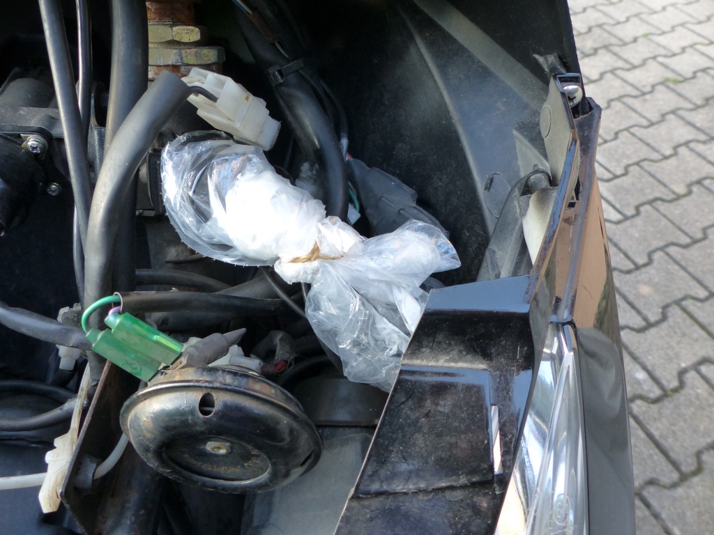 PS: im Vordergrund ist das neben DC-DC-Wandler und hinteren Blinkern einzige originale und noch funktionierende elektrische Bauteil meines Thunders zu sehen: die Hupe