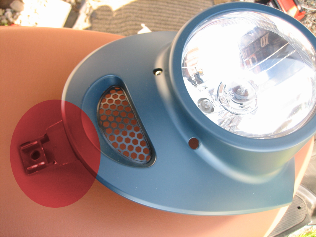 5.) Das Logo vorne unter dem Lampenträger auf die Seite drehen und die Sechskantmutter drunter losdrehen
