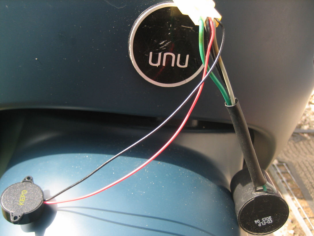 10.) Das rote Kabel des Piezo an das schwarze Kabel vom Stecker