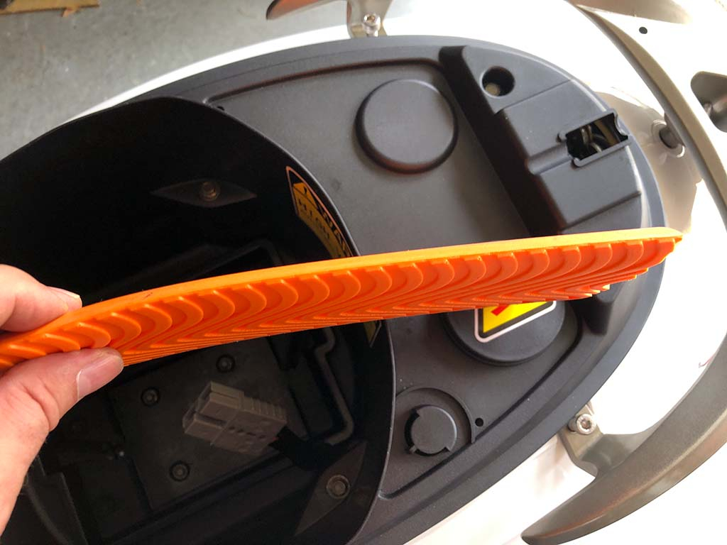 Istr der Kunststoff wieder kalt und fest ist der Deckel in etwa wie eine Tupper-Box - kann zum Laden einfach abgenommen werden (liegt ja nur auf). Trotzdem ist der Akku vor Wasser oder mechanischen Einflüssen geschützt.