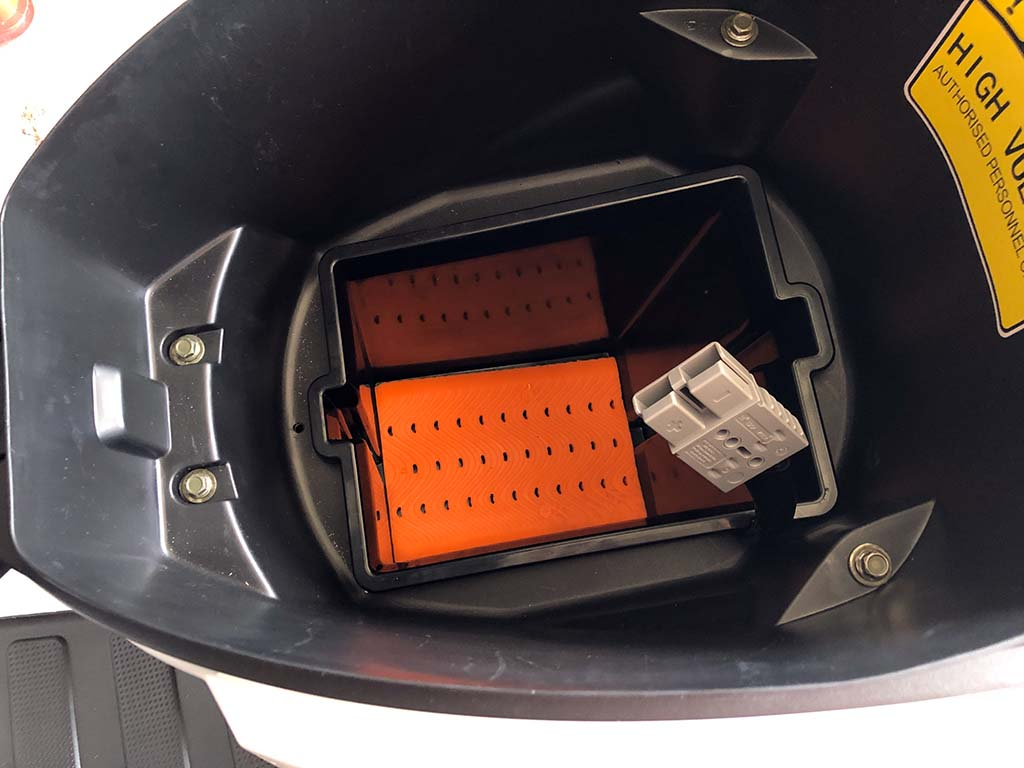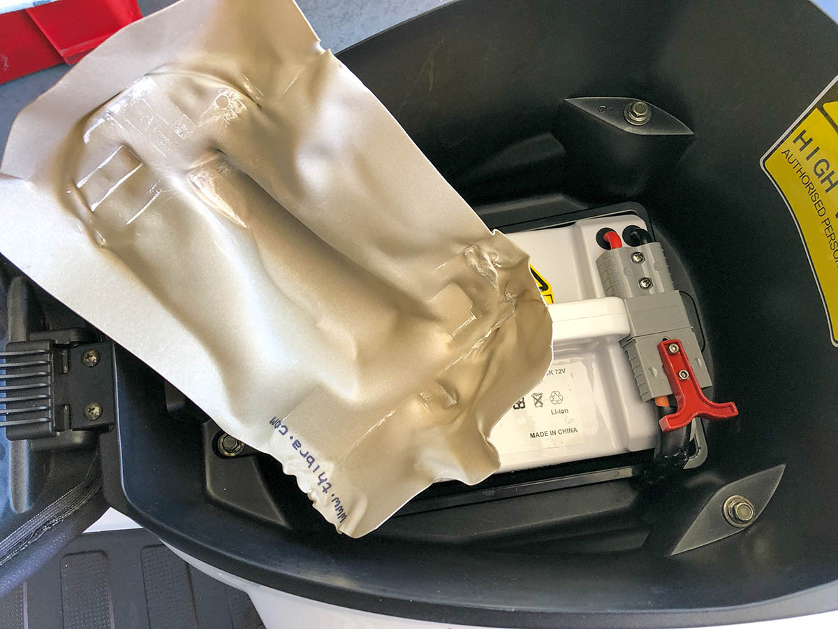 Es geht weiter: Da ich meinen Helm immer unter der Sitzbank verstaue gefällt/gefiel mir eines nicht: Der Helm liegt auf dem Akku und den Kabeln auf. Zudem verbirgt sich hier eine Gefahrenquelle: Wenn ich in den Regen käme und dann den Helm verstaue. Ein Hochleistungsakku mit geballten 52 Ah und 72 Volt und Regen oder regennasser Helm - das passt einfach nicht zusammen. Also muss eine Abdeckung her.