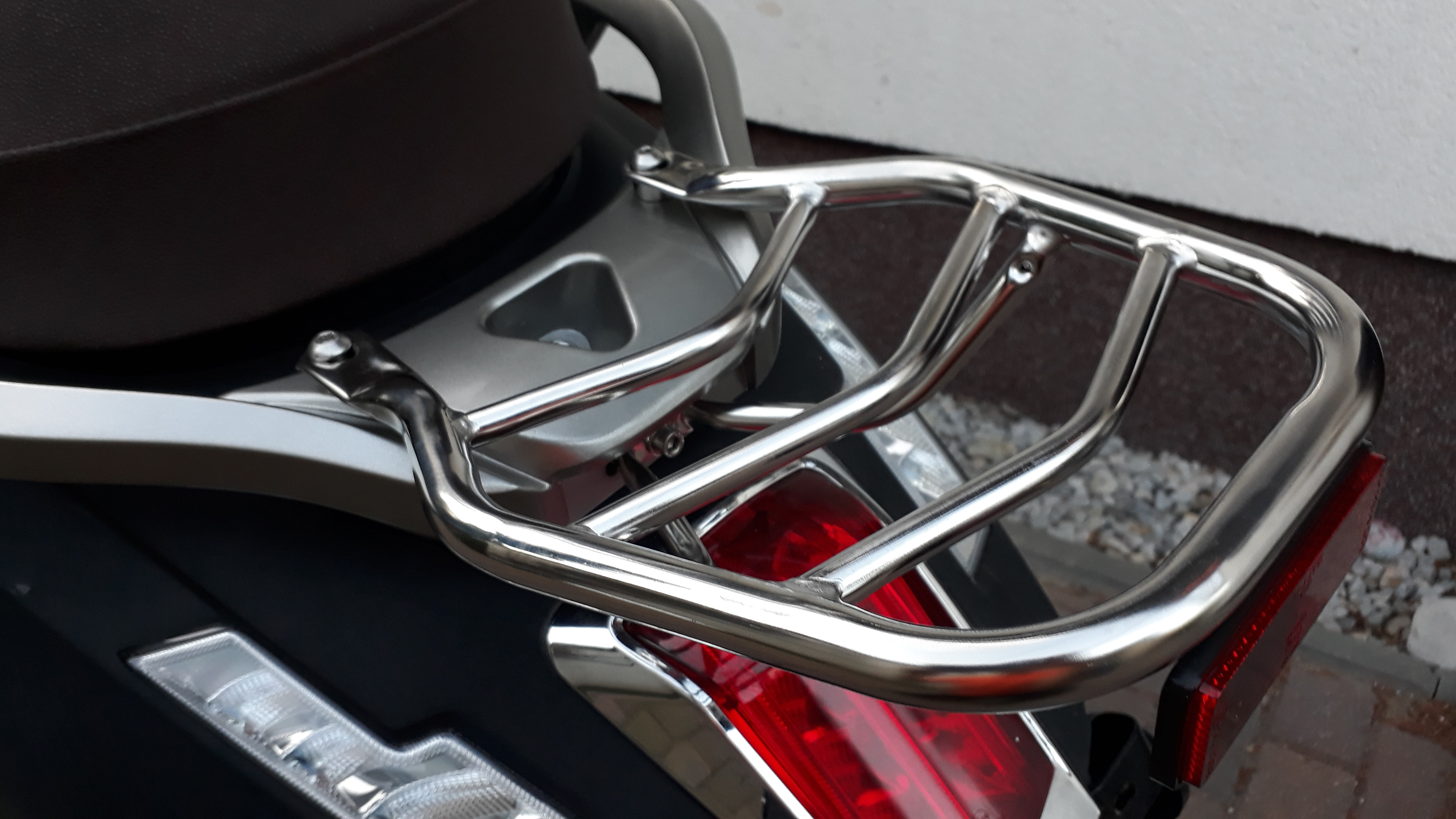 Ich habe unseren Pusa um ein Gepäckträger erweitert. Der Gepäckträger stammt vom Motobi BC One und hat mich 75€ gekostet. Schrauben wurden 2×M8 30mm und 1xM6 20mm verbaut. Passt wie angegossen und ist ausreichend stabil.