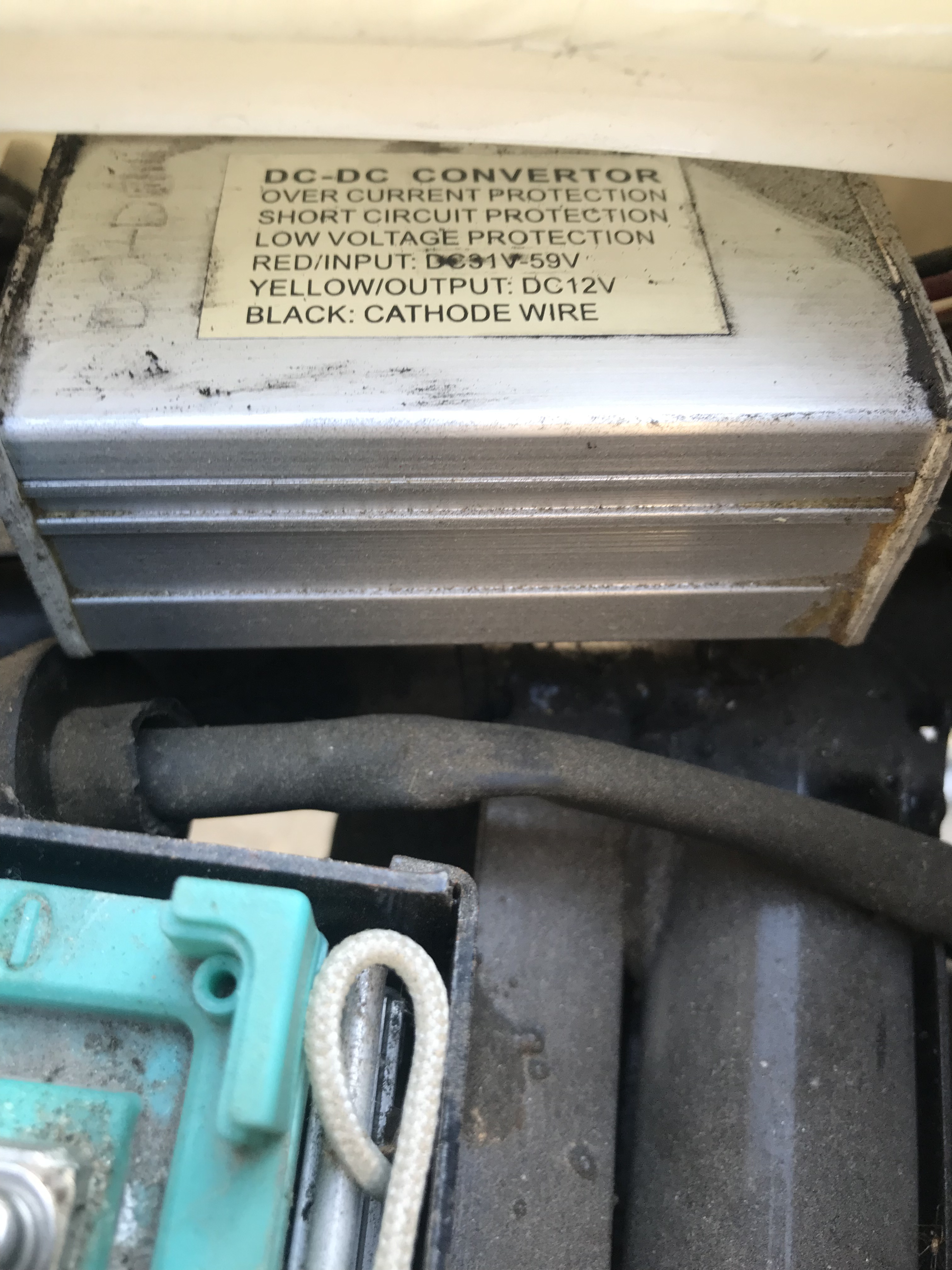 Also wenn ich am DC DC Converter die rote Leitung Messe kommen 55,5 v an. Wenn ich die gelbe messe kommt gar nichts an.
