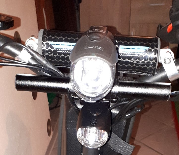 Das Lämpchen vorne hilft nur als "gesehen werden". Im Dunkeln nicht zu gebrauchen, schon gar nicht bei höheren Geschwindigkeiten. Da werde ich auf jeden Fall auch noch nachrüsten.