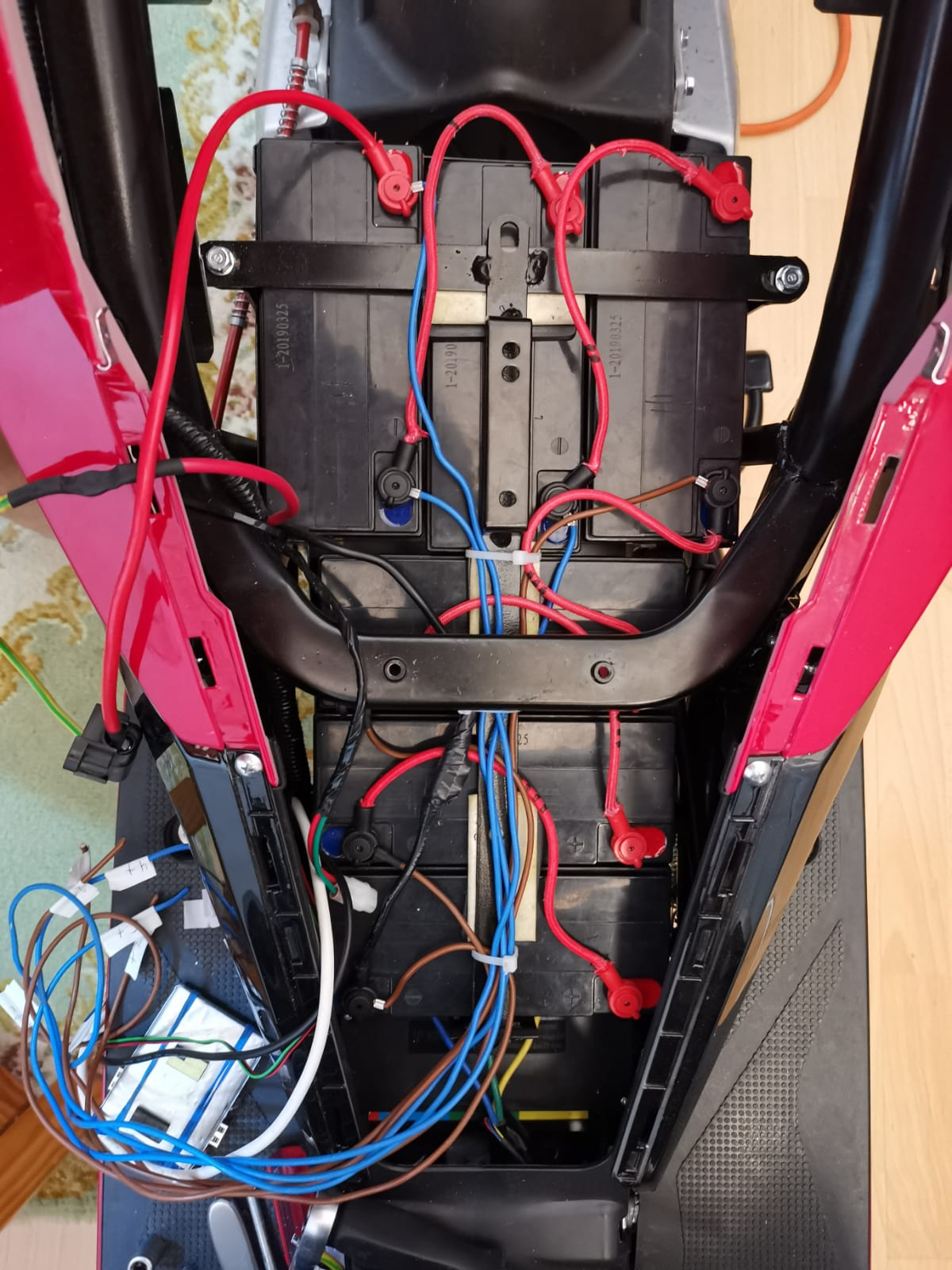 Meine 12-Volt-Batterien sind 20 Ampere-Stunden und können deshalb nicht entnommen und aufgeladen werden, weil sie sehr schwer sind und sich praktisch unter den Kunststoffen des Motors befinden und um alles zu entfernen, was nicht die beste Lösung ist, muss demontiert werden.