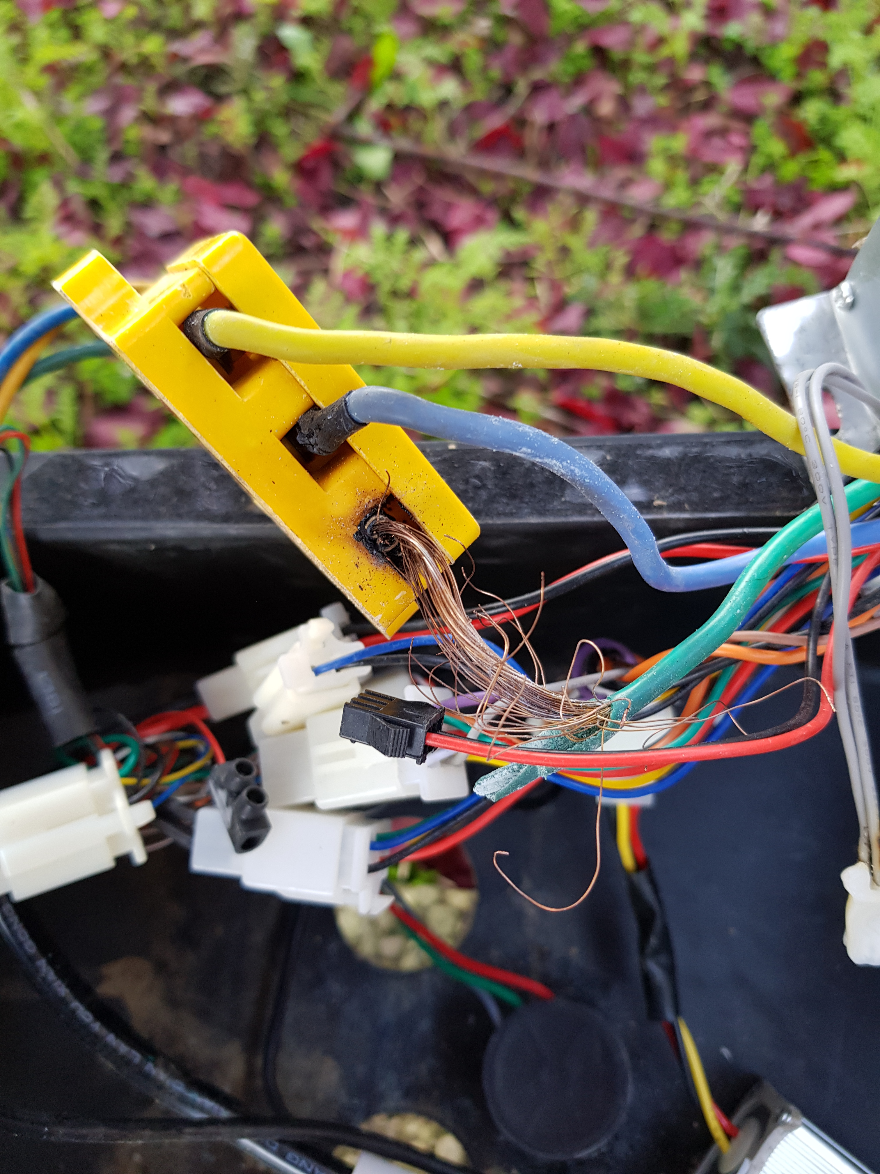Da der Batteriekasten nicht völlig wasserdicht ist, kann dort natürlich Feuchtigkeit eindringen. Ich gehe aber nicht davon aus, dass das die Ursache war. Wenn die Kabel so heiß werden, dass sie verschmoren, wird zuvor alles Wasser verdampfen. Vielleicht hat sich irgendwo ein Kabel durchgescheuert, wer weiß.