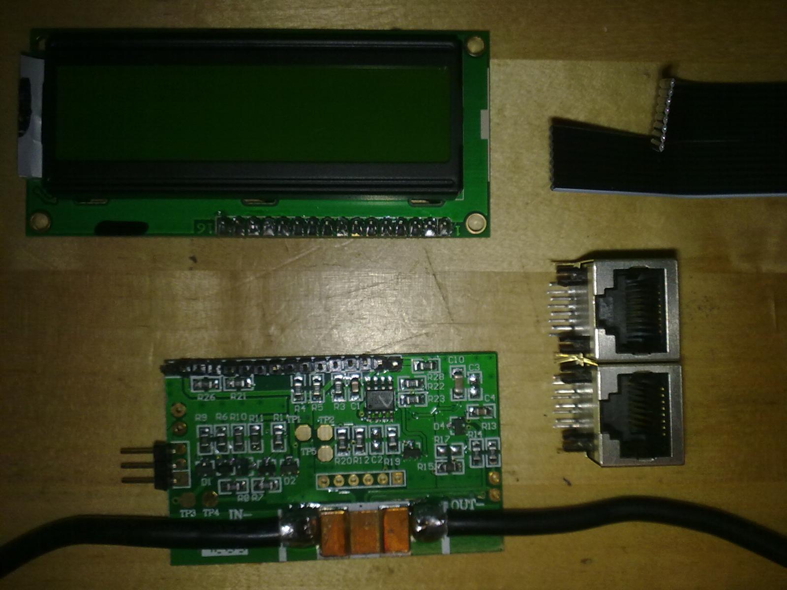 Zuerst wollte ich ein D-SUB Monitorkabel verwenden, wegen Dichtigkeit und Schraubbarkeit. Allerdings hat es nur 15Pins und eignet sich nicht wirklich für bewegte Verbindungen, deshlab habe ich einfach 2x8PINS mit Standart Netzwerkbuchsen mit hochwertigen Netzwerkkabeln verbunden. Ein altes IDE Kabel zur Verbindung von Platine zu Buchse.